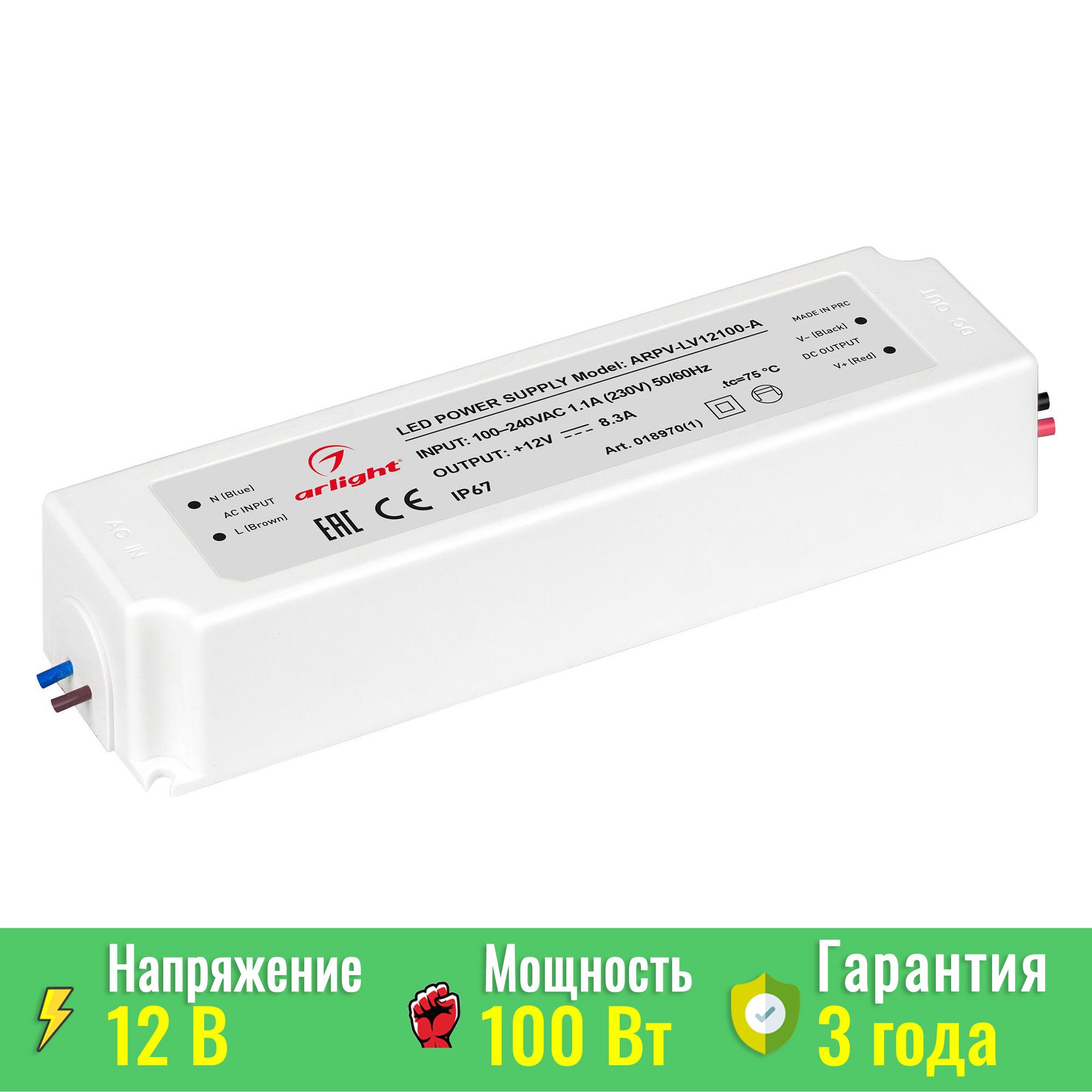 Блок питания ARPV-LV12100-A (12V, 8.3A, 100W) (Arlight, IP67 Пластик) Arlight 018970