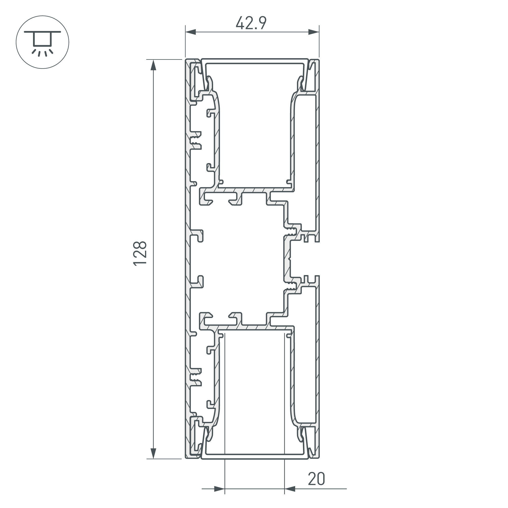 Профиль с экраном S2-WALL-X2-H128-2500 ANOD+OPAL (Arlight, Алюминий) Arlight 021179