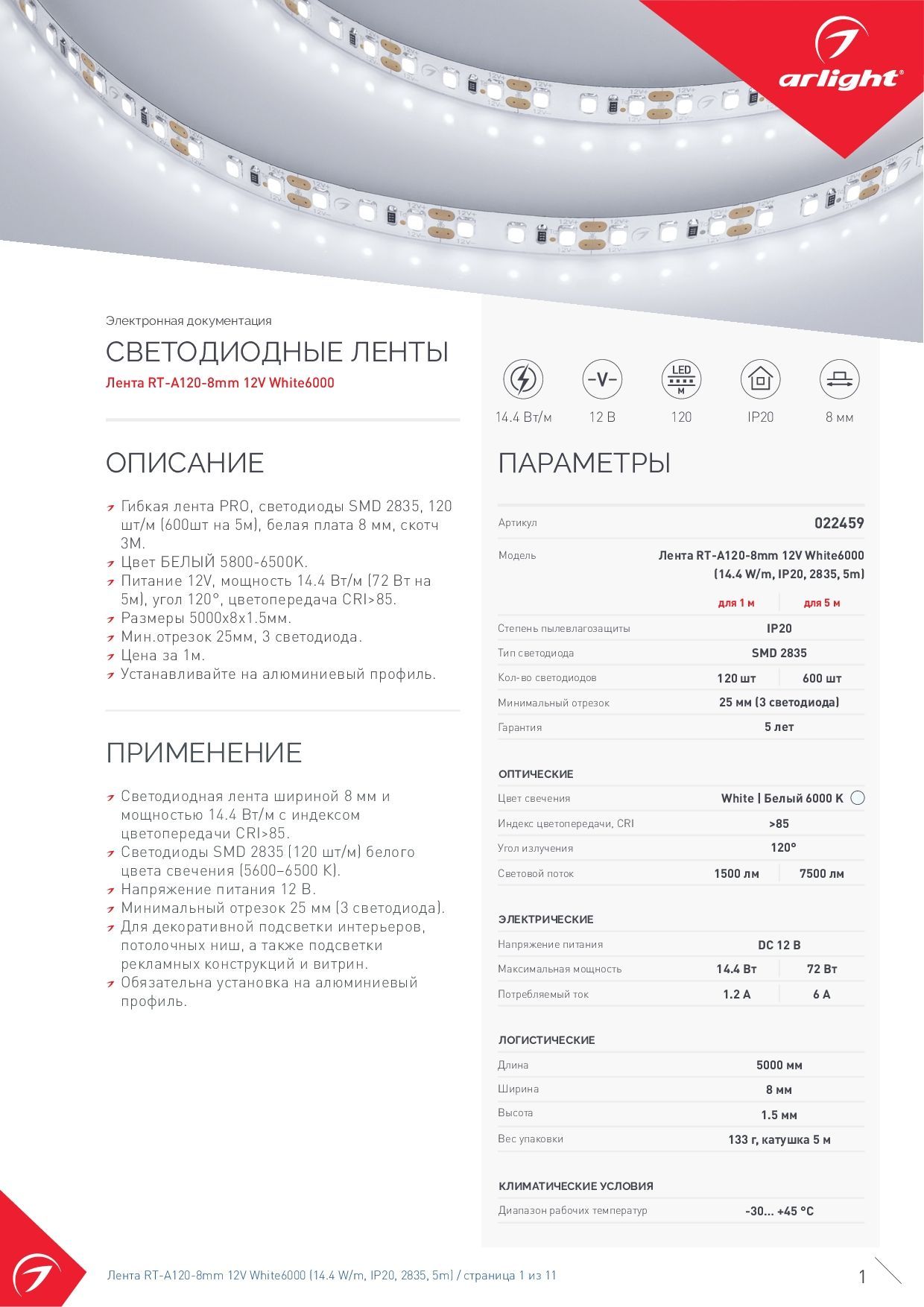 Характеристики Arlight 022459