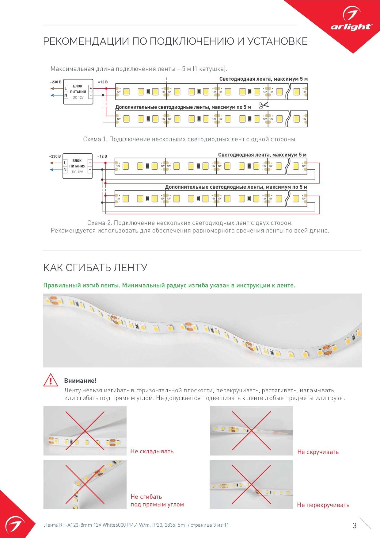 - Плотность светодиодов 120 шт/м