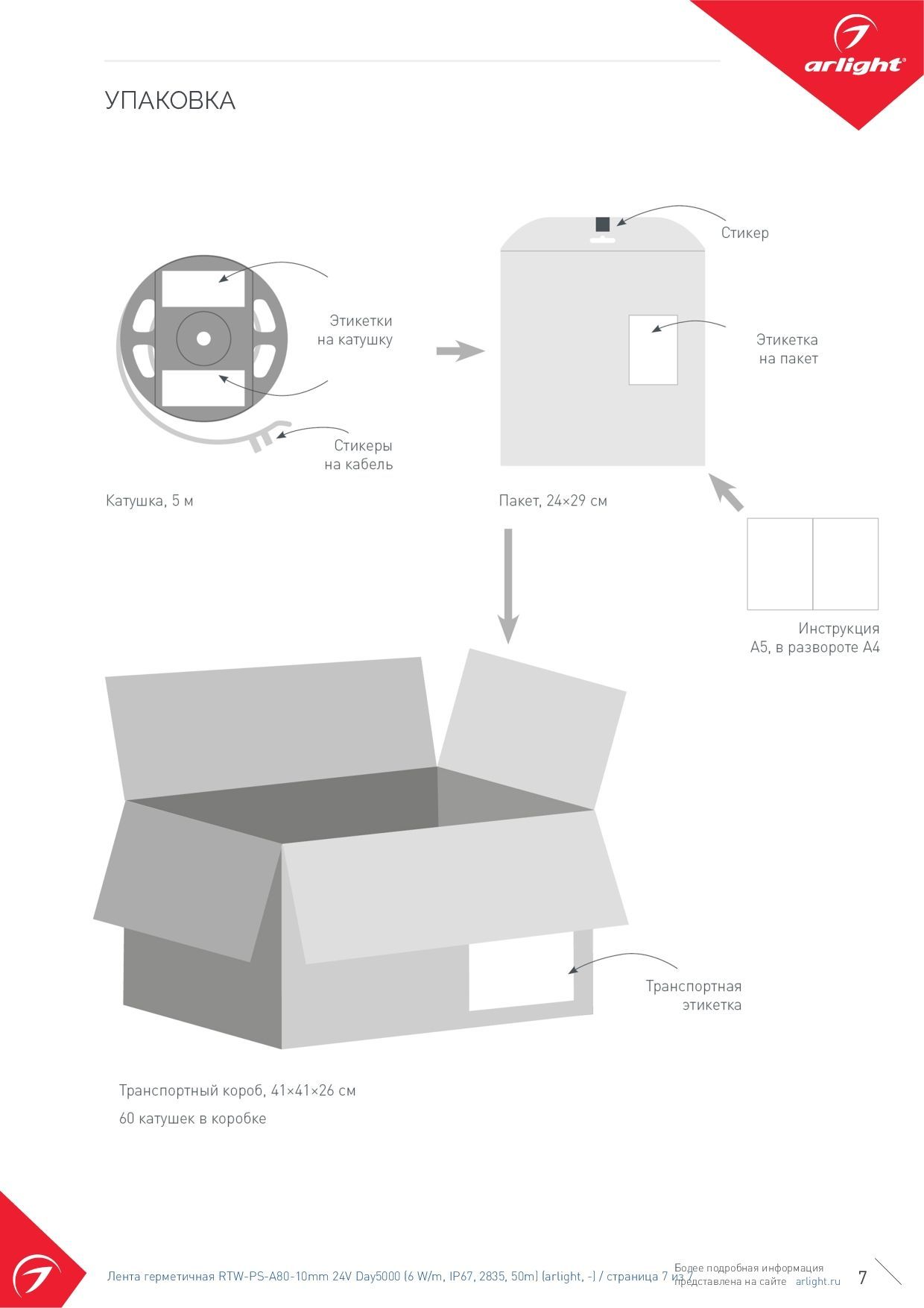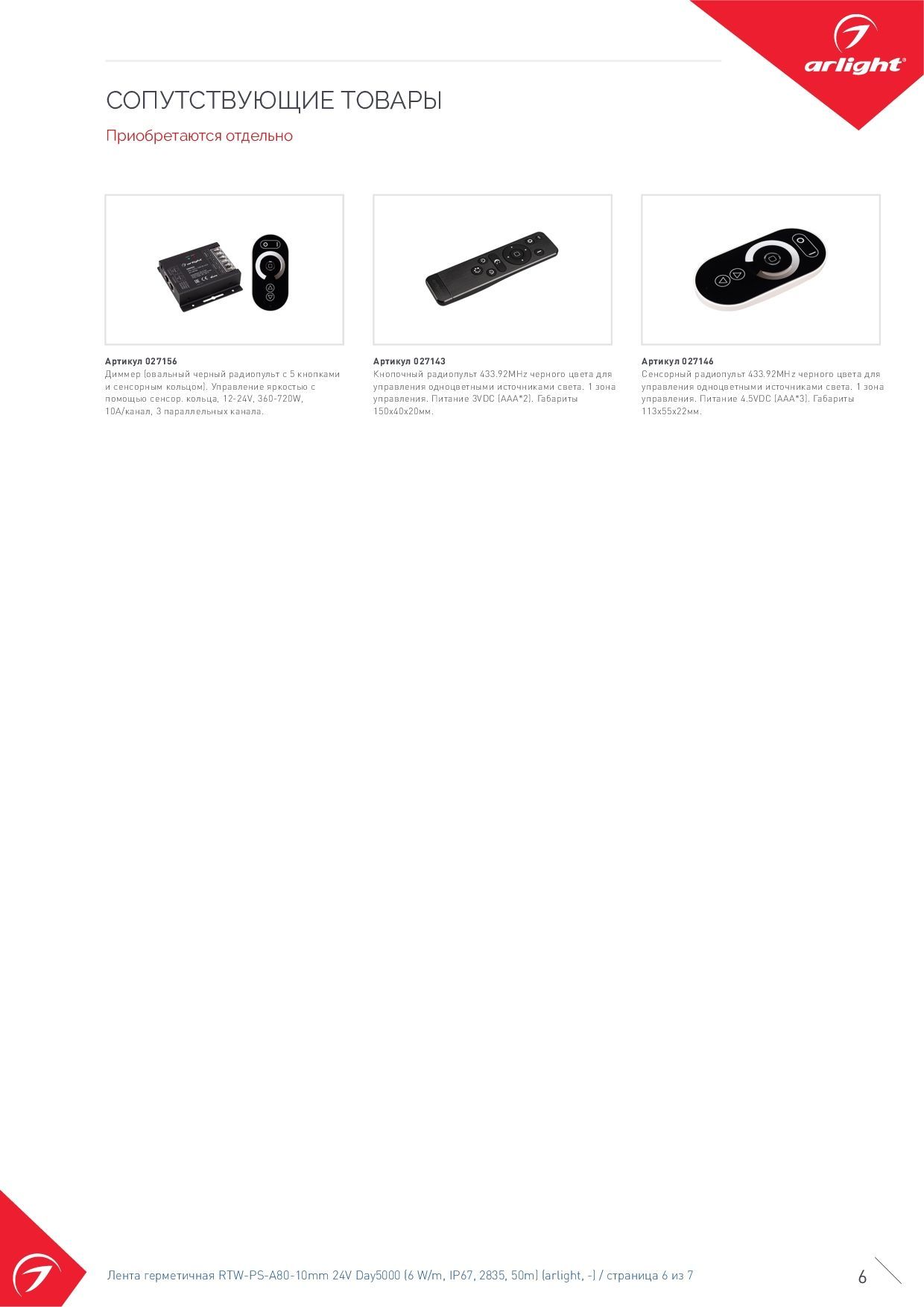 024529(2) Лента герметичная RTW-PS-A80-10mm 24V Day5000 (6 W/m, IP67, 2835, 50m) (Arlight, -)