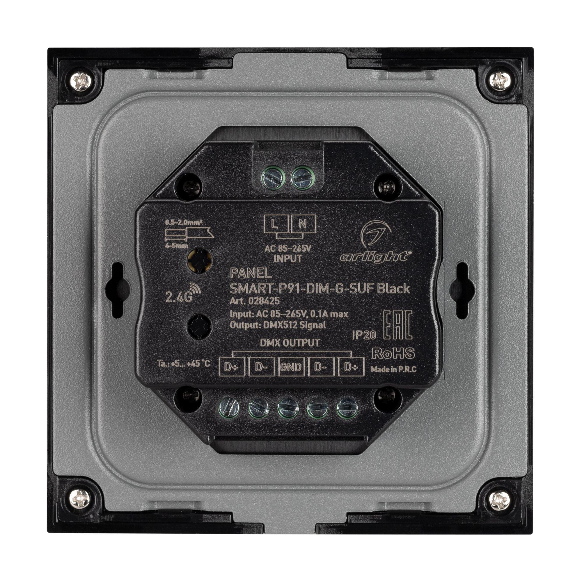 028425 Панель SMART-P91-DIM-G-SUF Black (230V, Rotary, 2.4G) (Arlight, IP20 Пластик)