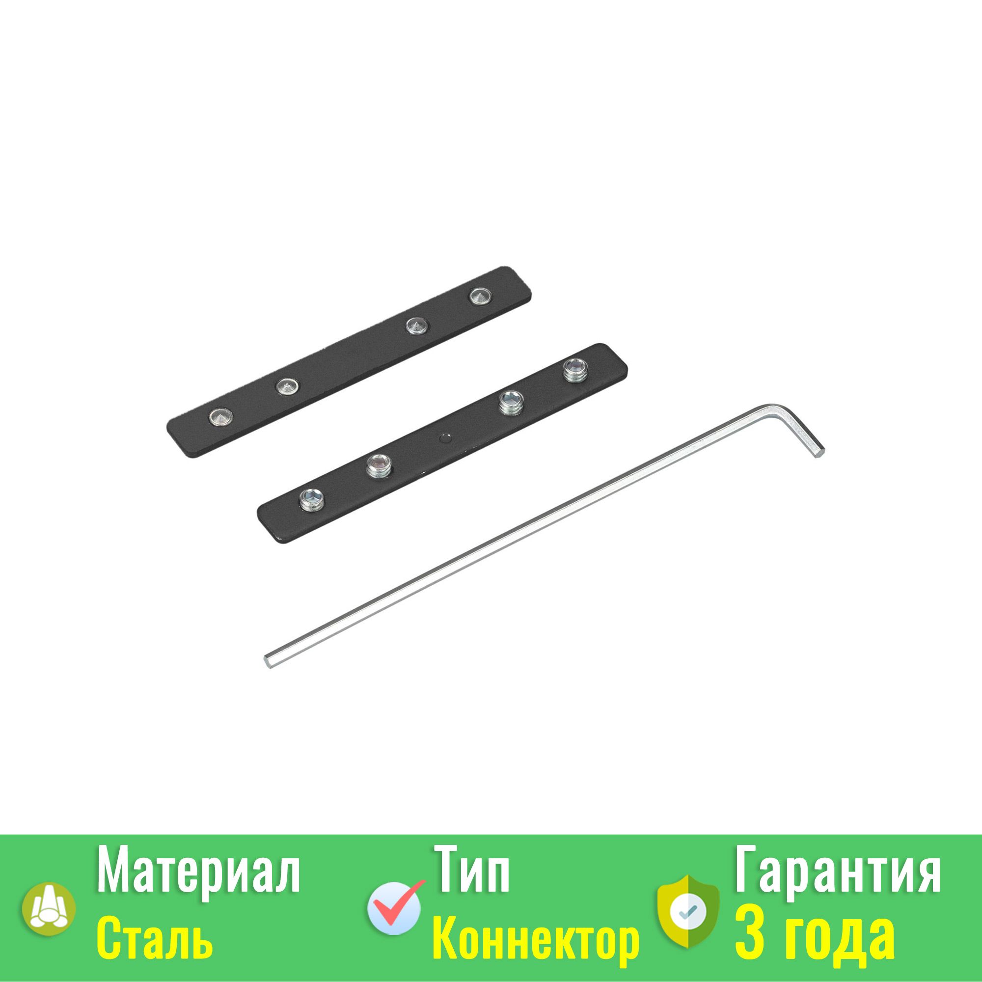 Параметры конструкции: длина — 80 мм, ширина — 10 мм и высота — всего 2 мм — делают этот соединитель незаметным элементом вашей системы. Цвет покрытия чёрный позволяет интегрировать его в любой интерьер. Монтаж осуществляется на трек магнитный шириной 32 мм, что ускоряет процесс установки и демонтажа. В комплект входят 10 соединителей, 40 винтов и 2 шестигранных ключа, что избавляет от необходимости приобретать дополнительные расходные материалы.