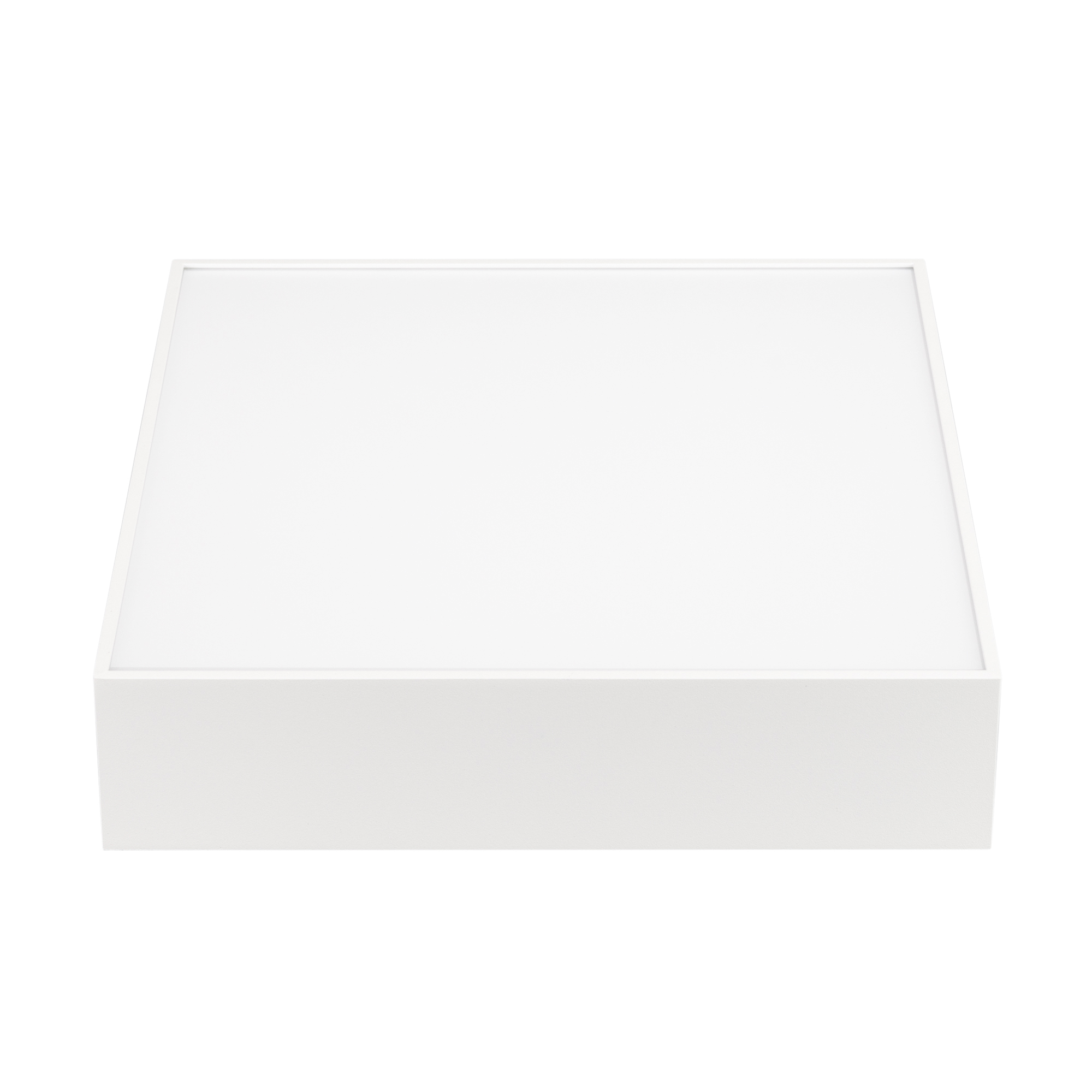 Светильник предназначен для использования в жилых и офисных помещениях. Его квадратная форма и компактные размеры 250 на 250 мм с высотой 59 мм, делают установку быстрой и простой, а легкий монтаж накладным способом подходит для любого типа потолков.