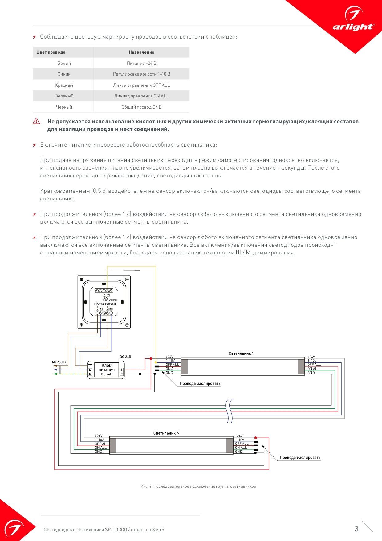 Светильник SP-TOCCO-L300-5W Day4000 (SL, 120 deg, SENSOR, 24V) (Arlight, Металл) Arlight 037230