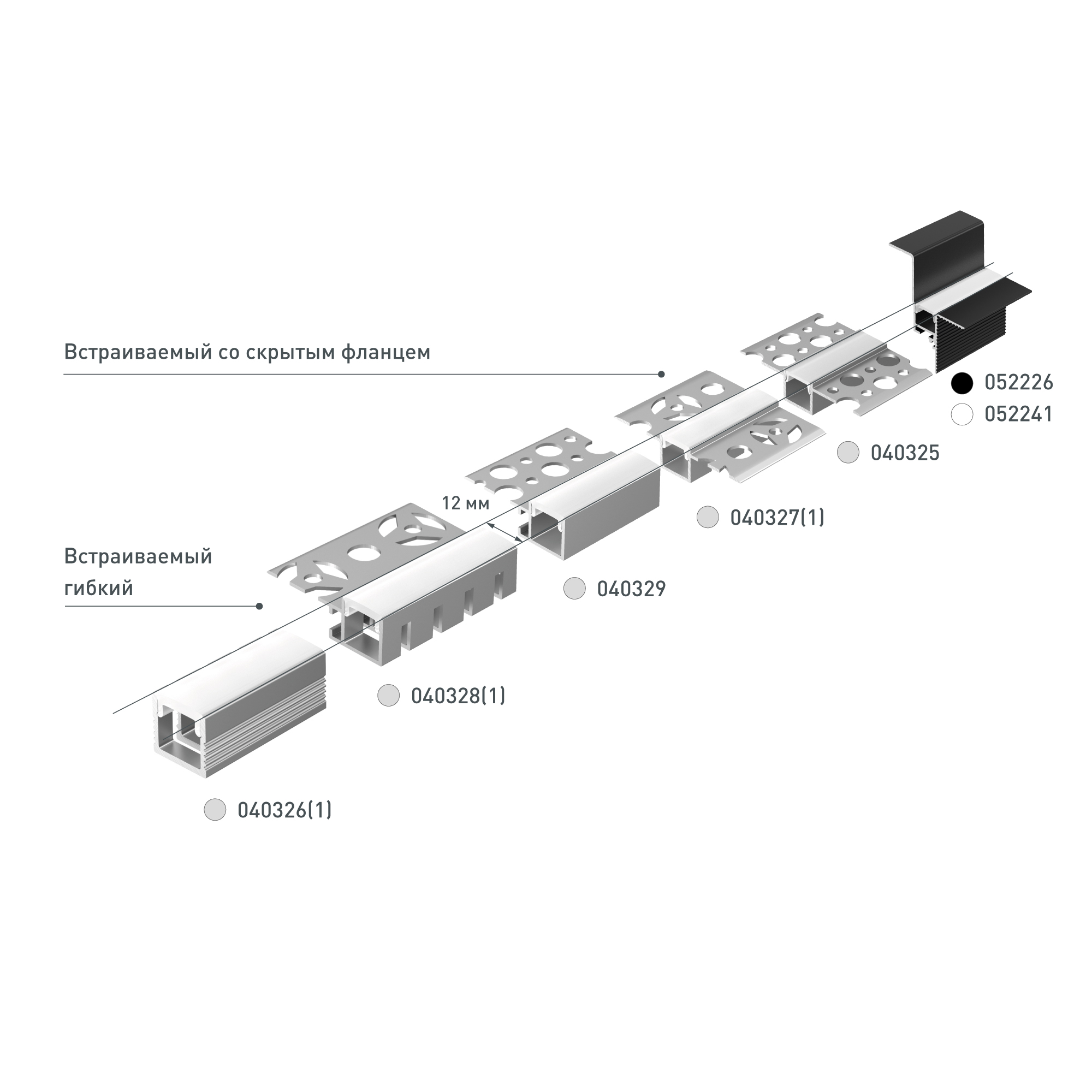 Закупка экрана, заглушек и других аксессуаров осуществляется отдельно. Цена указана за погонный метр. Артикул: 040327(1). Штрихкод для заказа: 4680638908242. Профиль имеется в наличии в интернет-магазине 'Новолампа'.