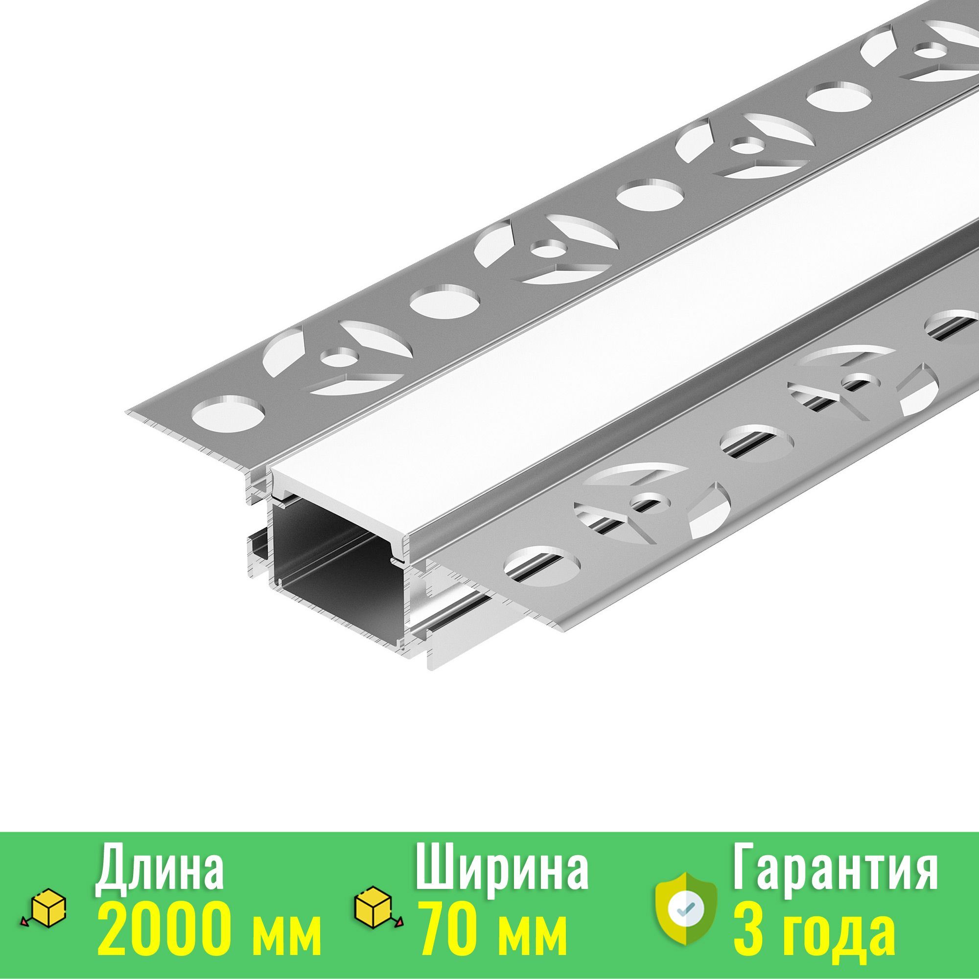 Размеры профиля составляют 2000 мм в длину, 70 мм в ширину и 17,1 мм в высоту, что позволяет легко встраивать его в потолки и ниши из гипсокартона. Глубина установки источника света составляет 16 мм, а ширина площадки для монтажа светодиодных лент — 17 мм. Это делает профиль совместимым с лентами мощностью до 44 Вт на метр. А это значит, что вы сможете создавать разнообразные световые решения с учетом ваших потребностей. Для большего удобства профиль интегрирован со скрытым фланцем, что облегчает его установку и позволяет добиться аккуратного вида без видимых креплений.