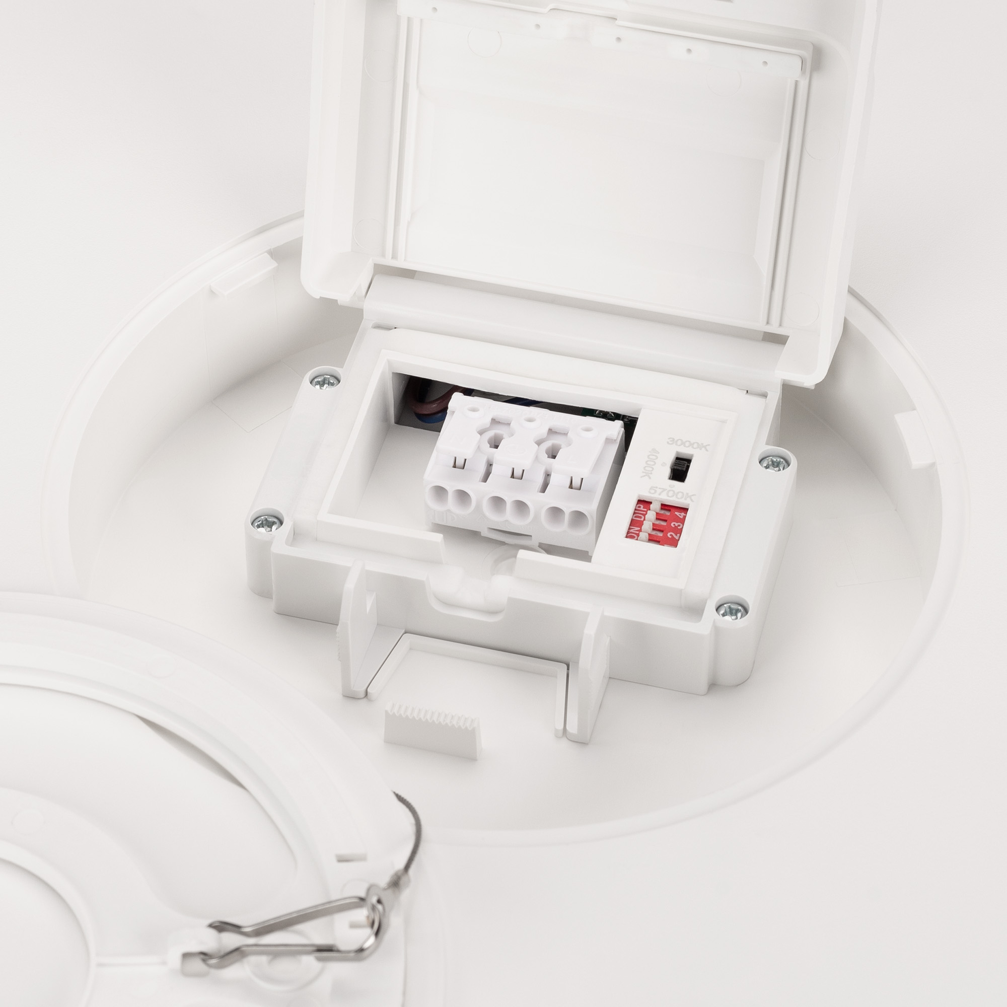 - Материал корпуса: прочный пластик с белым покрытием, что делает светильник стильным и стильным.