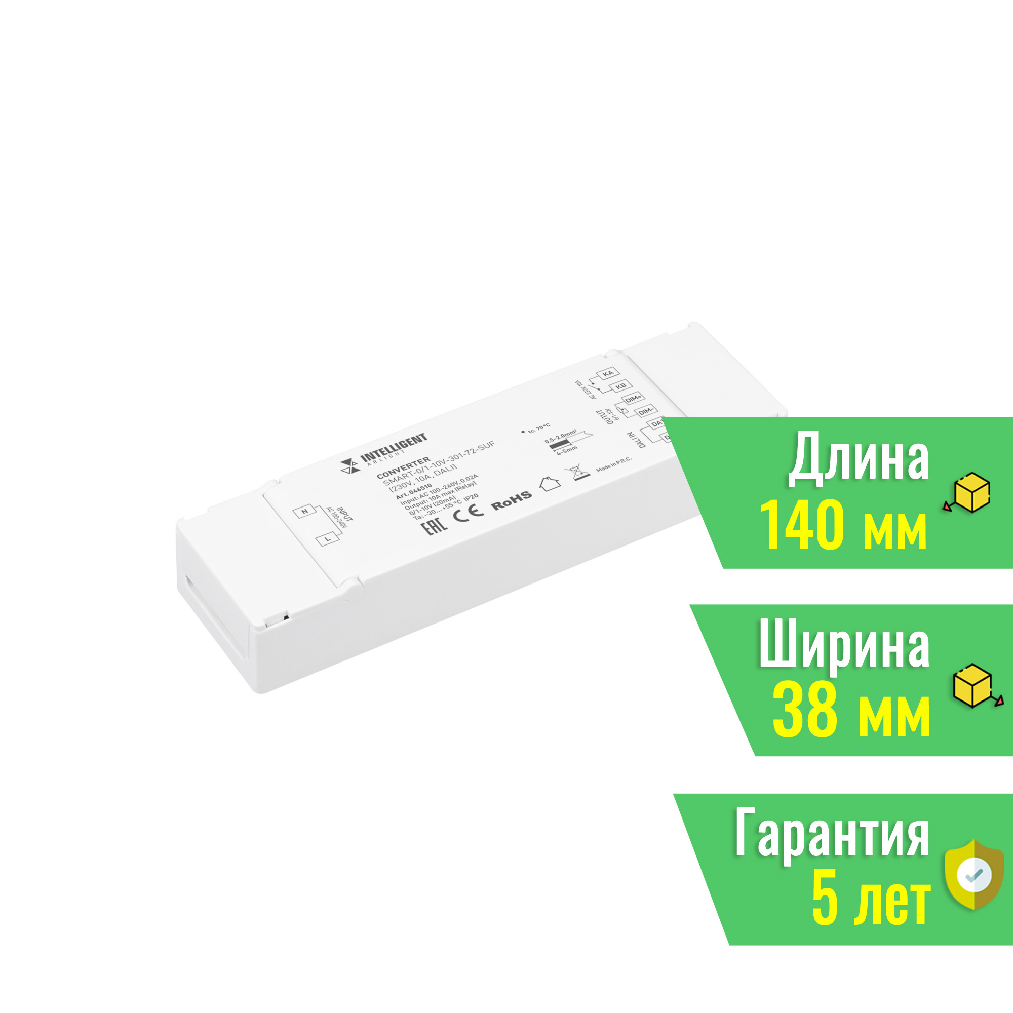 Конвертер INTELLIGENT ARLIGHT SMART-0/1-10V-301-72-SUF предоставляет гибкость в управлении и регулировке освещения, минимизирует затраты энергии и обеспечивает долговечность работы системы. Благодаря пятилетней гарантии, вы можете быть уверены в надежности и долговременной эксплуатации устройства.