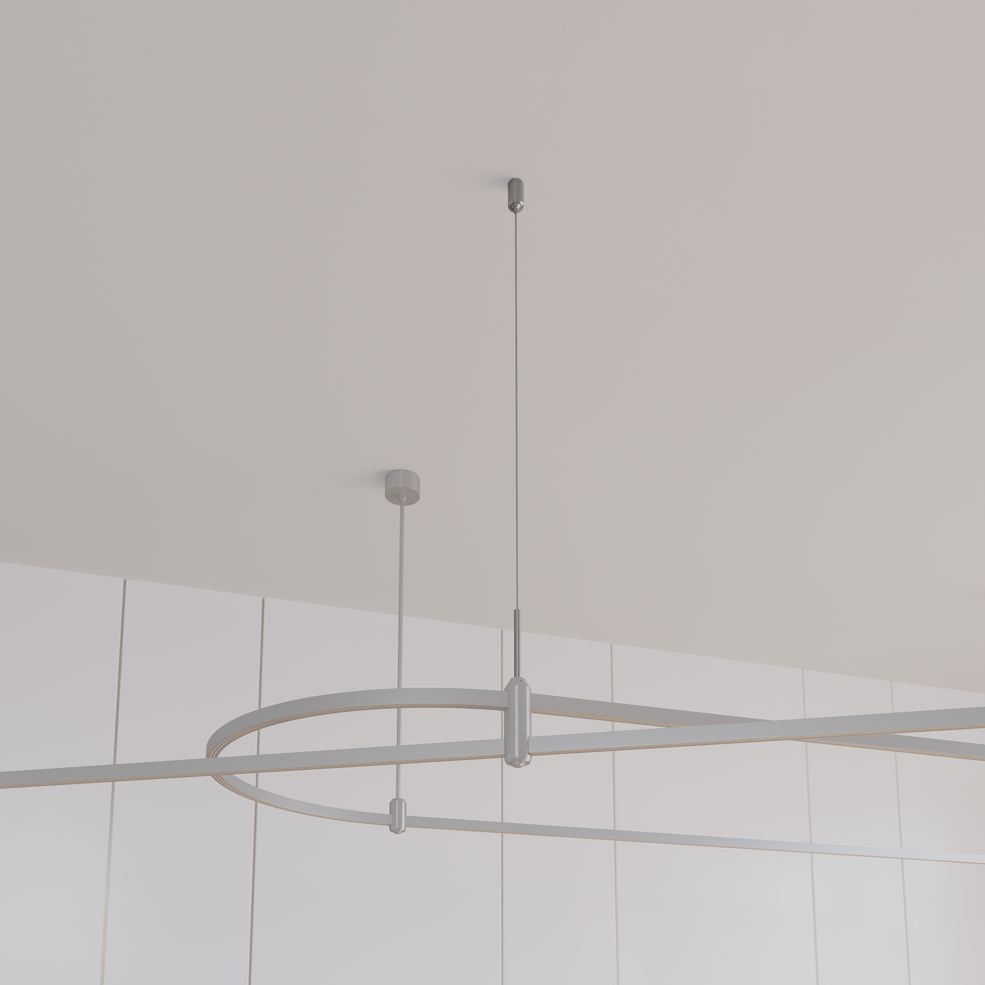 - Способ монтажа: Подвесной метод установки позволяет легко интегрировать треки в любое дизайнерское решение. Также предусмотрена регулировка троса для оптимальной подгонки под вашу высоту потолка.