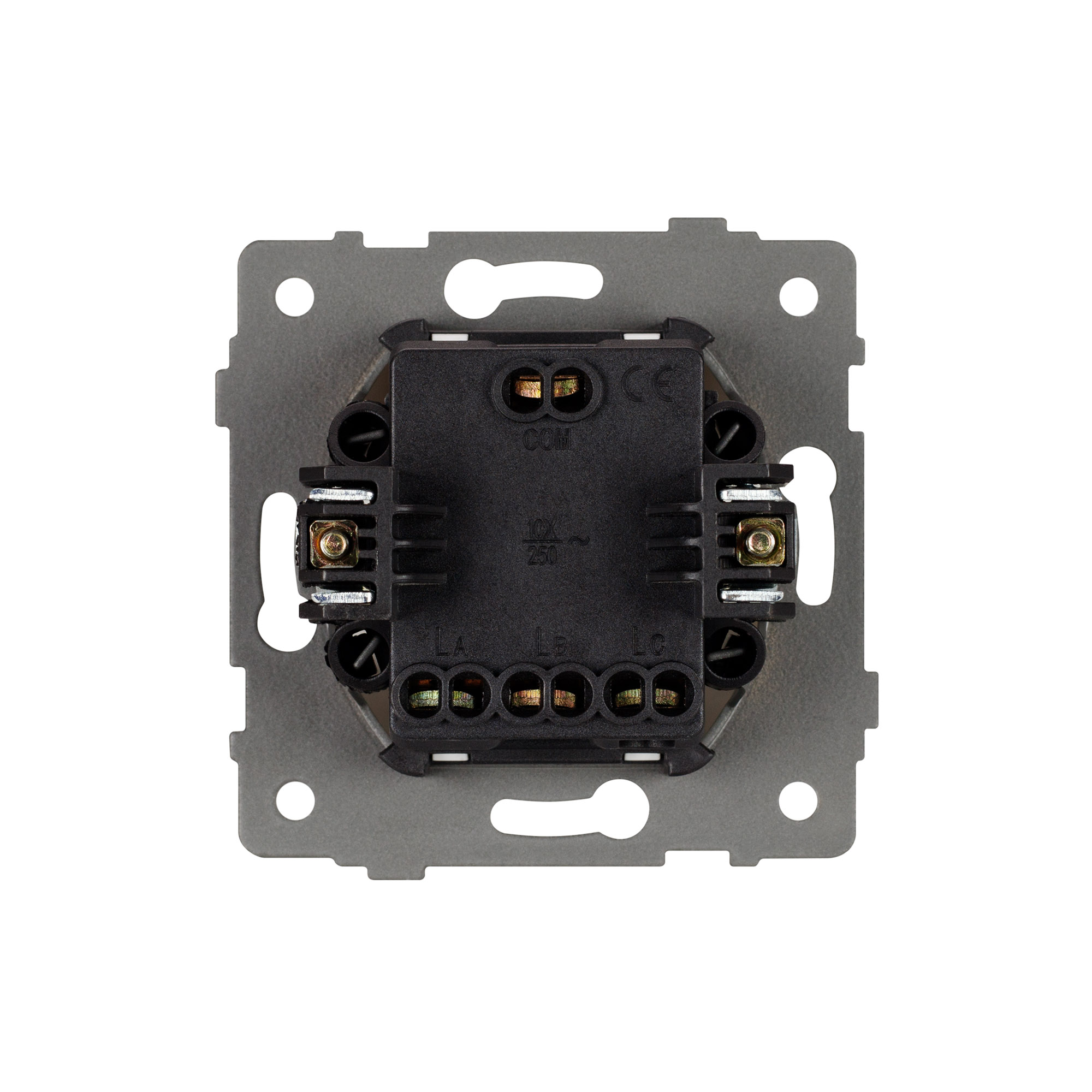 Механизм выключателя света клавишный на 1 пост 3 клавиши (непроходной). Цвет - белый. Без фронтальной рамки. Уровень пылевлагозащиты IP20. Выключатель устанавливается в стандартный круглый подрозетник.
