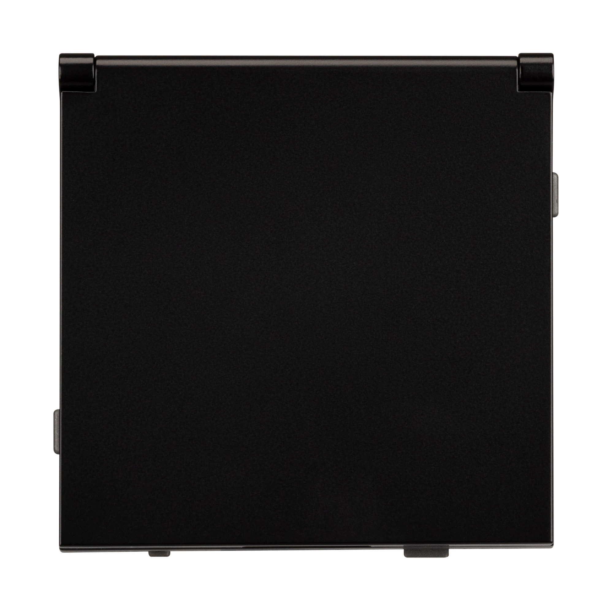 Механизм розетки с заземлением и влагозащитной крышкой на 1 пост. Цвет - черный. Без фронтальной рамки. Уровень пылевлагозащиты IP20. Розетка устанавливается в стандартный подрозетник круглого сечения диаметром 60мм.