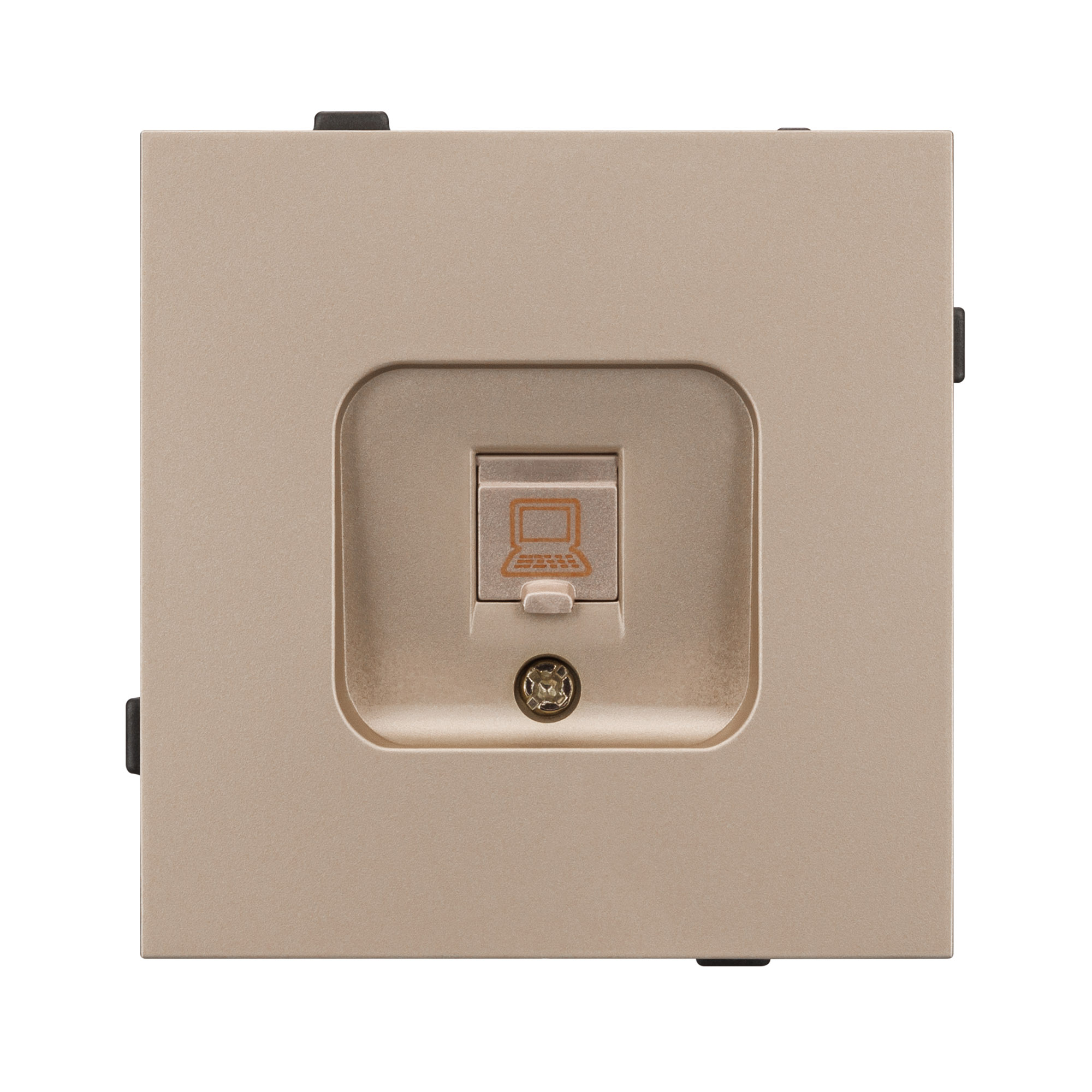 Механизм компьютерной розетки на 1 пост 6-й категории. Цвет - золотой. Без фронтальной рамки. Уровень пылевлагозащиты IP20. Розетка устанавливается в стандартный подрозетник круглого сечения диаметром 60мм.