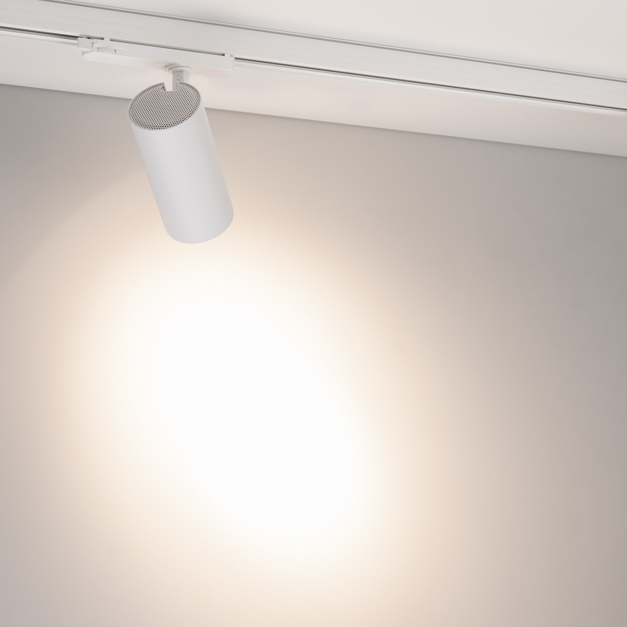 Светильник для треков/шин 4 провода. Мощность 20 Вт, св. поток без решетки honeycomb 2000 лм, 100 лм/Вт, с решеткой honeycomb 1320 лм, 66 лм/Вт, дневной 4000 K, CRI>90, угол 15°, напряжение питания 230 В. Белый круглый корпус из алюминия, материал линзы PMMA, степень защиты IP20. Антибликовая решетка honeycomb в комплекте. Размер: диаметр 74 мм, длина световой части 154 мм. Монтаж на трек 3-фазный. Драйвер встроенный 24-42 В, 500мА., пульсация <5% Заказать товар 055152 вы можете в Санкт-Петербурге по телефону 8 (800) 700-80-91.