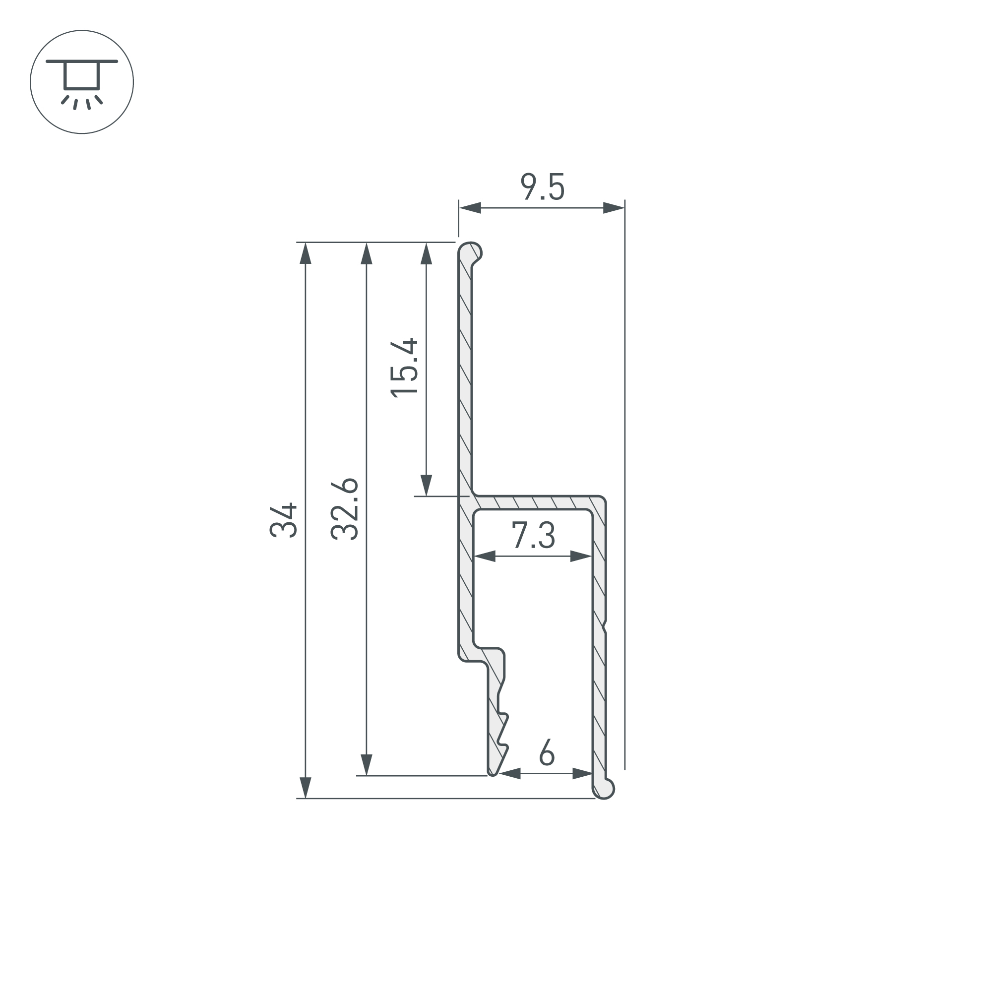 - Габаритные размеры: Длина профиля составляет 2000 мм, что идеально подходит для большинства стандартных помещений. Ширина — 10 мм, высота — 34 мм.