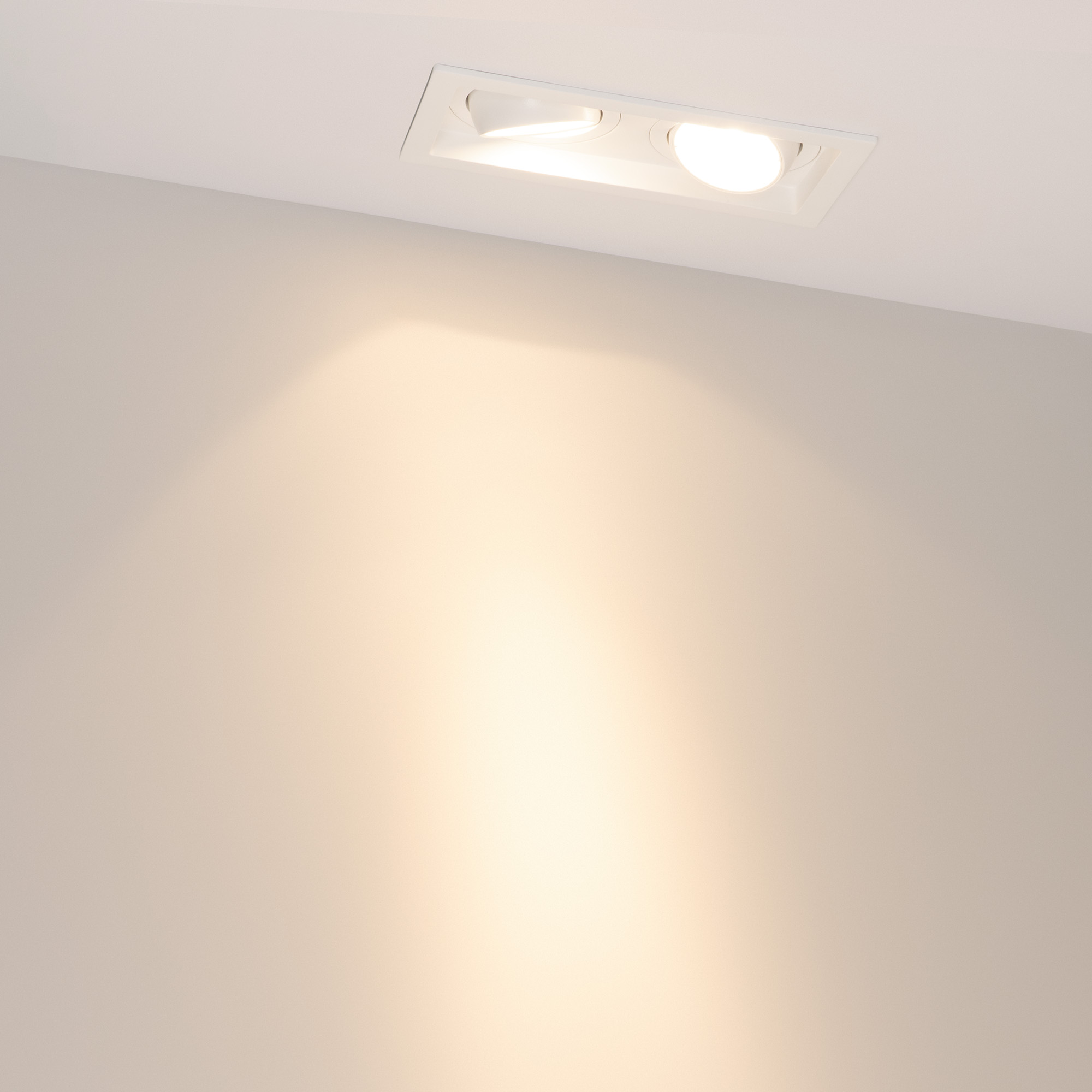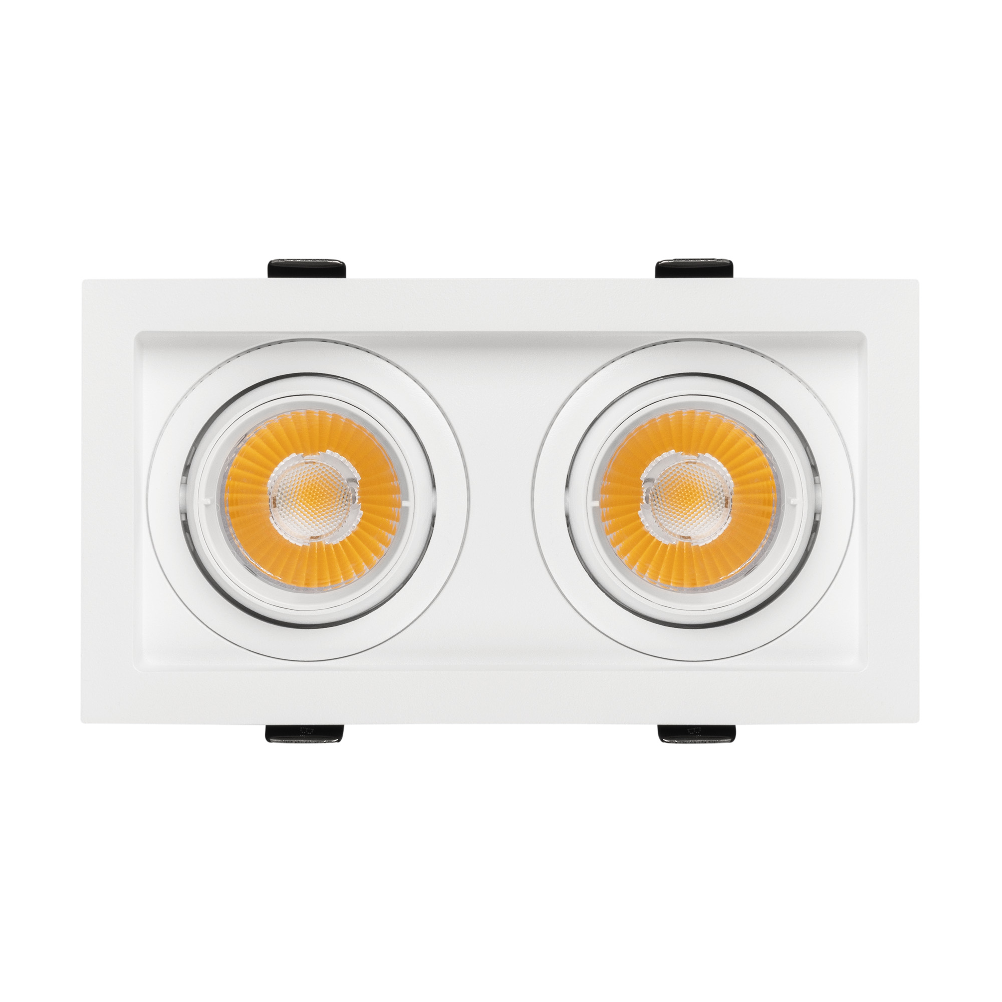 Встраиваемый карданный светильник. Мощность 2х12 Вт, св. поток 2636 лм, 109 лм/Вт, тёплый 3000 K, CRI>92, угол 20°, напряжение питания 230 В. Белый корпус из алюминия, белая вставка, степень защиты IP20. Размер: длина 170 мм, ширина 90 мм, высота 80 мм. Монтаж встраиваемый, установочное отверстие: длина 155 мм, ширина 75 мм. Драйвер 27-40 В, 300 мА, пульсация <2%. Заказать товар 057760 вы можете в Санкт-Петербурге по телефону 8 (800) 700-80-91.