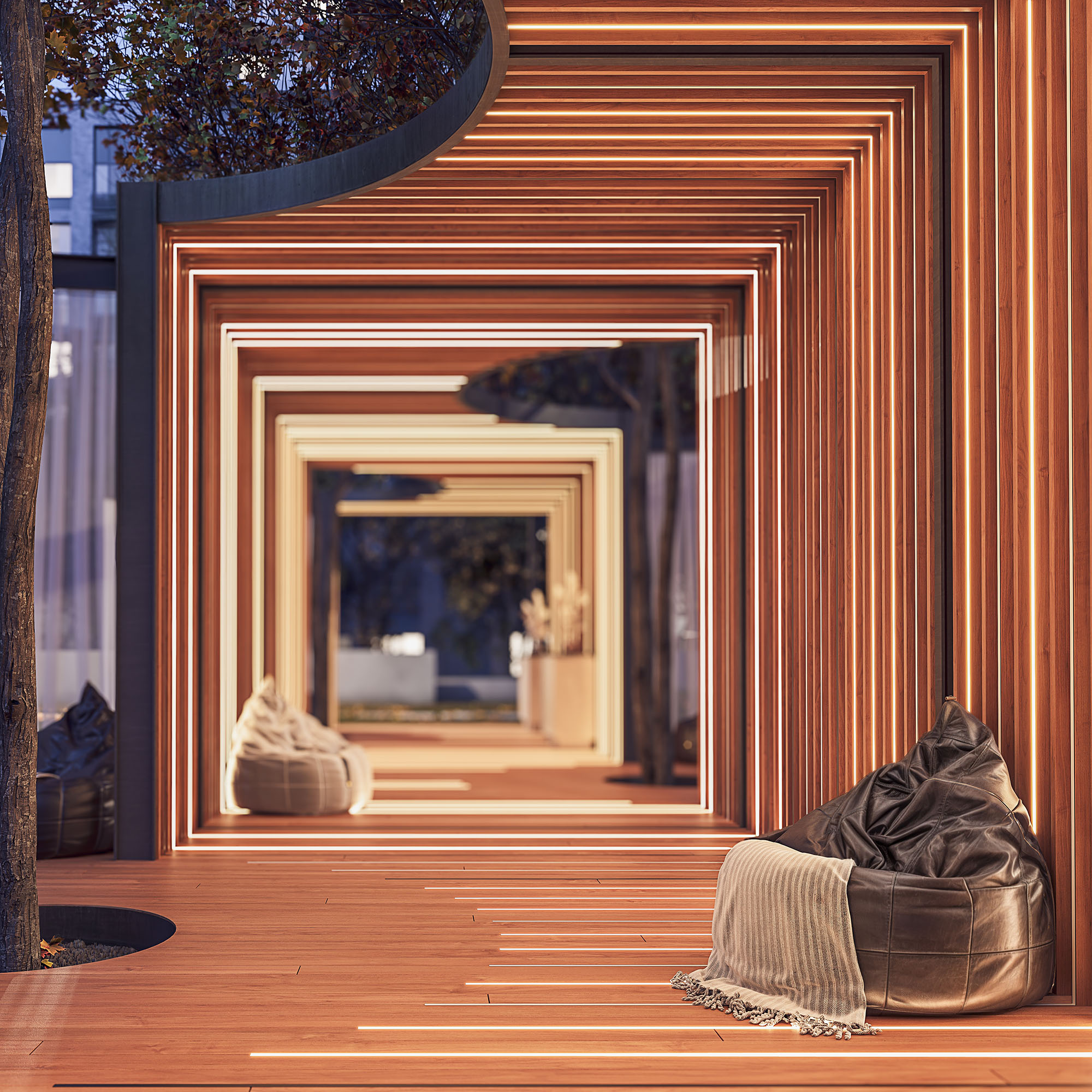 - Архитектурное освещение: создание тонких световых линий на фасадах зданий