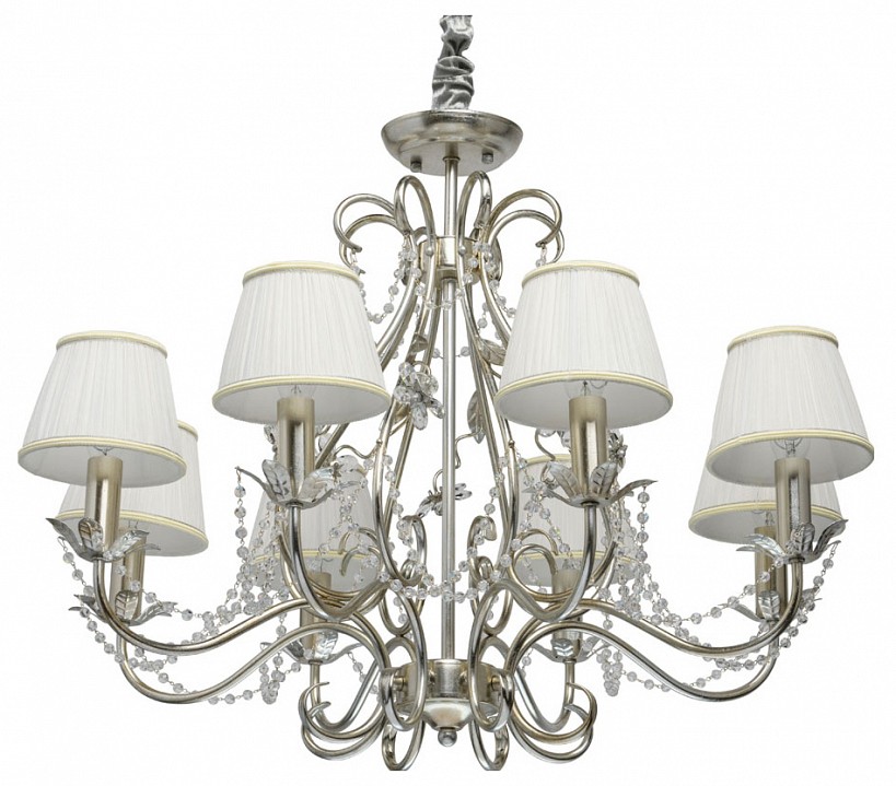 регулируется по высоте Изящная люстра из коллекции «Валенсия» восхищает своей неповторимой грацией и красотой. Металлическое основание представлено в двух цветовых вариациях: цвета золота и серебряного оттенка с эффектом патинирования. Под стать величественному изгибу рожка и розеткам в флористическом духе – элегантные тканевые абажуры. Они также представлены в двух цветовых решениях: классического белого оттенка и абажуры-хамелеоны. Завершают роскошную композицию декоративные бусы из прозрачного хрусталя и витые элементы из металла в тон основания. Заказать товар MW299011608 вы можете в Санкт-Петербурге по телефону 8 (800) 700-80-91.