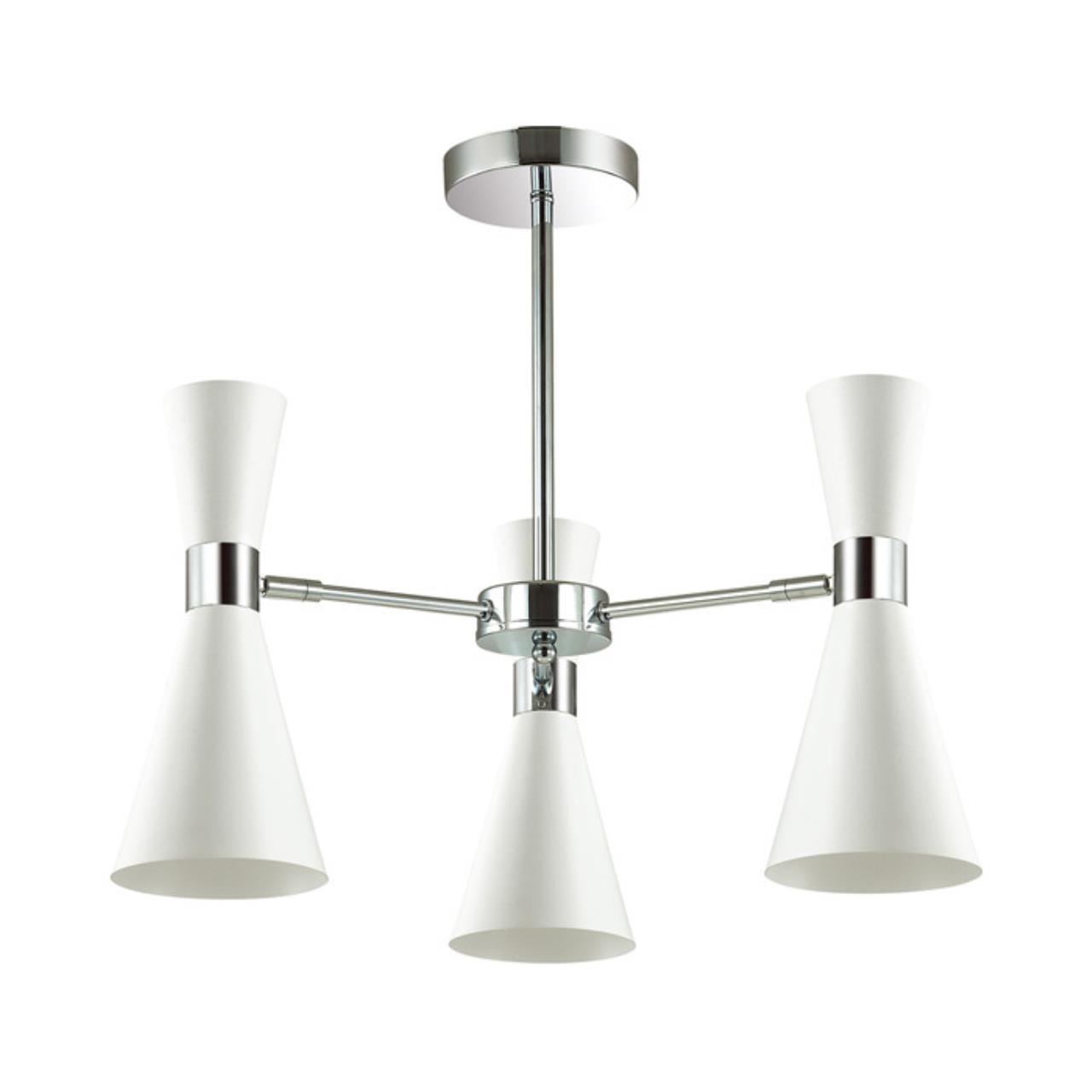 Люстра Quinn от бренда Lumion воплощает в себе эстетику современного стиля. Сочетание хромированной арматуры с глянцевой поверхностью и матовых белых металлических плафонов создает эффектный контраст, который будет уместен в любом современном интерьере. Светильник имеет диаметр 550 мм и высоту 445 мм, что делает его оптимальным выбором для помещений средней площади.