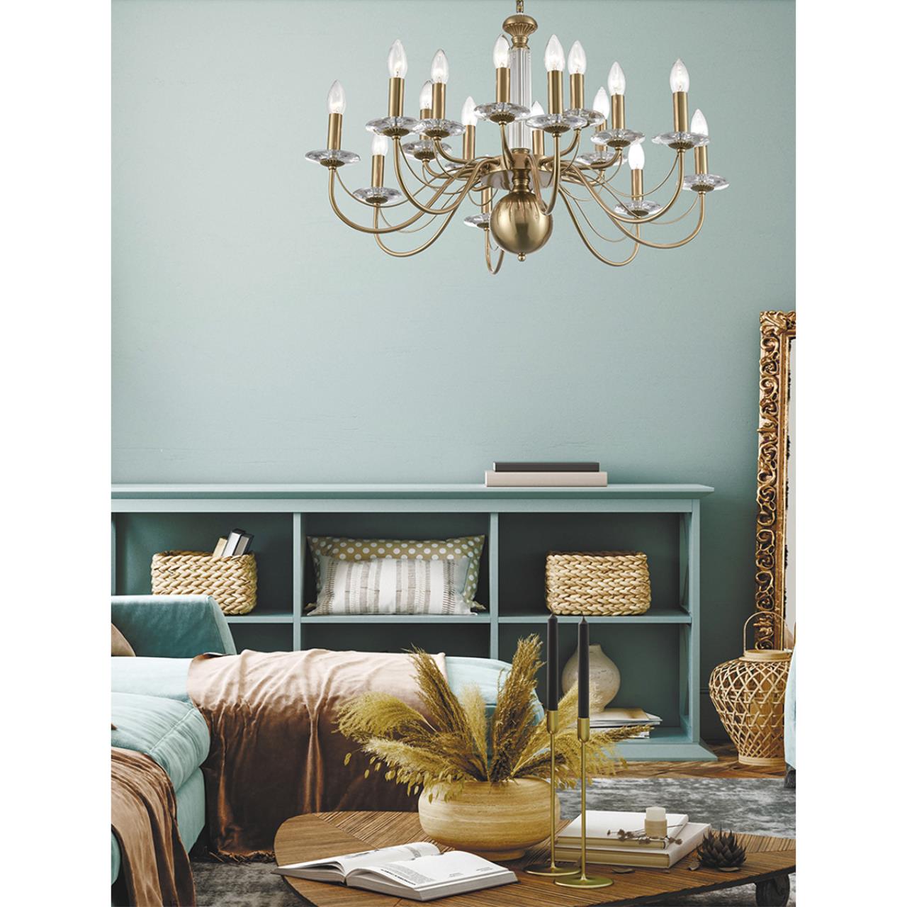Люстра Lumion INCANTO 8033/16 представляет собой классическую конструкцию с 16 изящными рожками, расположенными в два яруса. Тонкие, элегантно изогнутые рожки выполнены из металла медного цвета с глянцевым покрытием, которое великолепно отражает свет и создает теплую, уютную атмосферу в помещении.