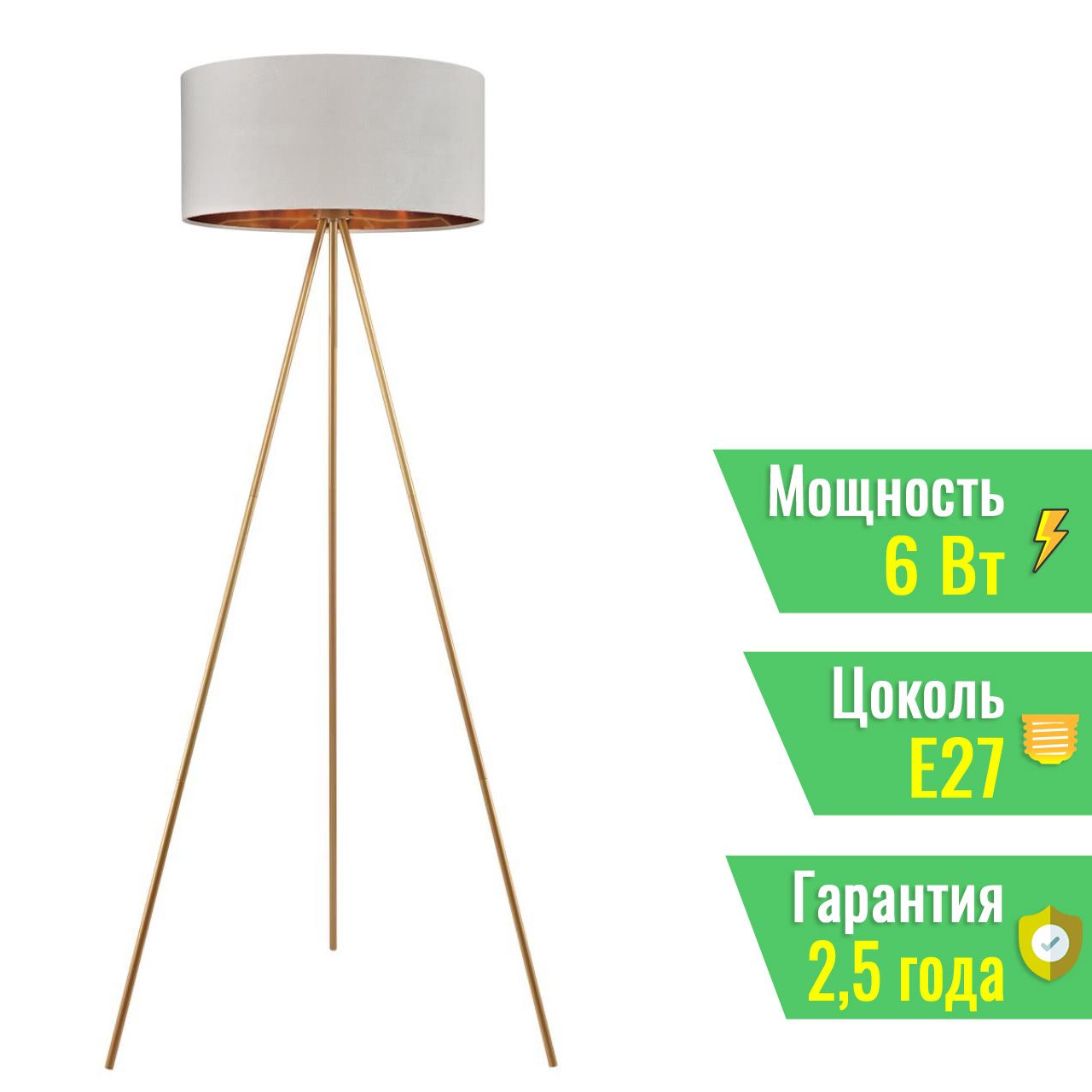 Торшер выполнен в классическом стиле, что делает его универсальным решением для различных типов интерьеров. Бархатный белый абажур с золотистой внутренней поверхностью создает мягкое, рассеянное освещение и добавляет элегантности всему образу светильника. Стойка основания представляет собой металлическую треногу, окрашенную в изысканный золотистый цвет, что обеспечивает не только эстетическую привлекательность, но и надежную устойчивость конструкции.