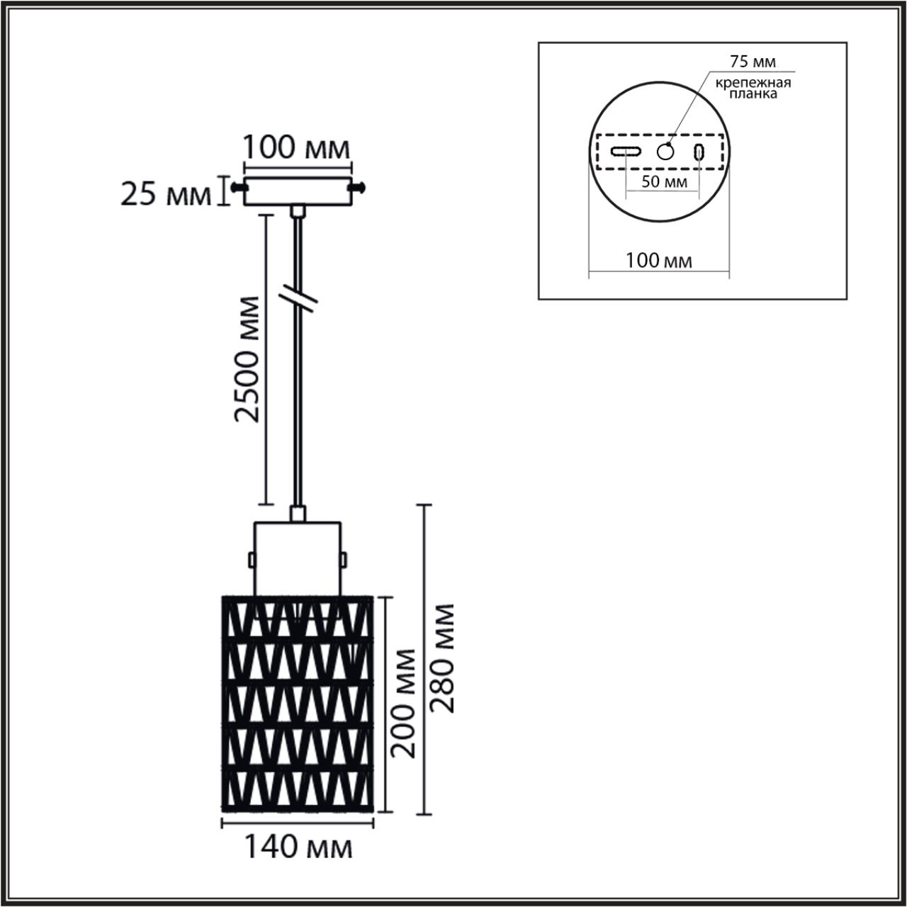 - Светильник Диаметр, мм подвесной