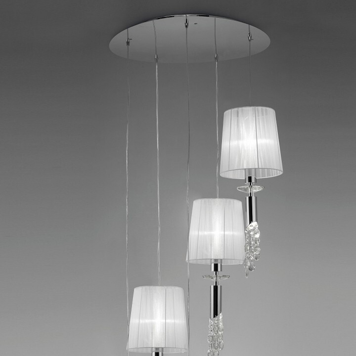 - Материал плафонов и подвесок органза, хрусталь