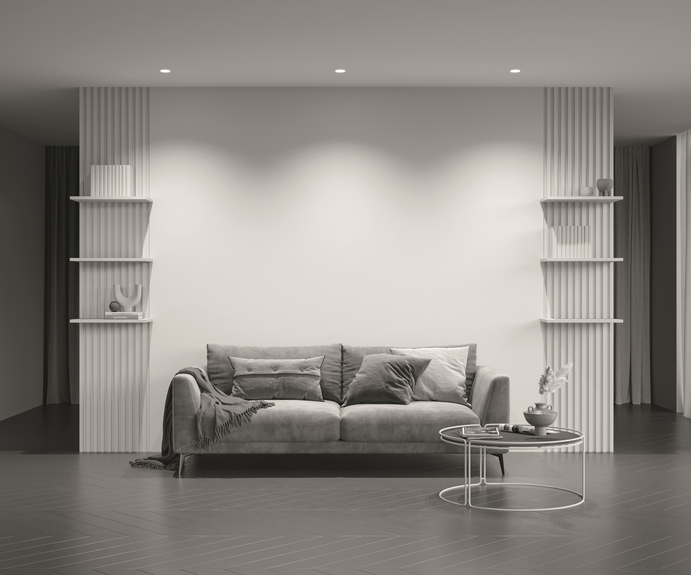 Светильник монтируется методом встраивания под шпаклевку, что позволяет добиться эффекта 'парящего света' - корпус остается практически незаметным, а видимым остается только источник света. Такой способ монтажа делает его идеальным выбором для современных интерьеров, где ценится минимализм и чистота линий.