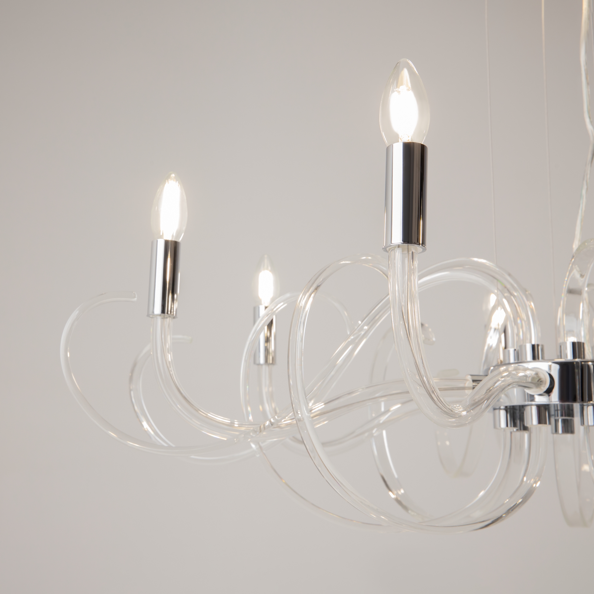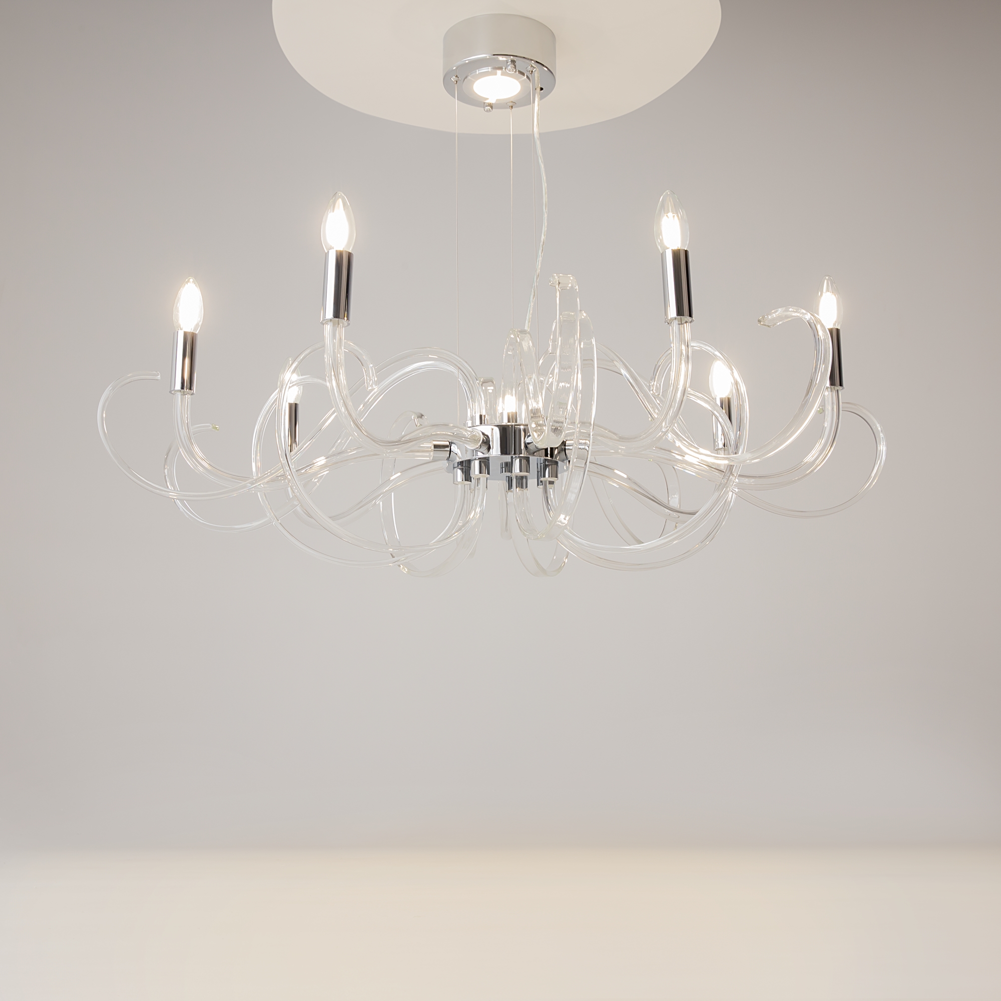 Люстра Atlanta отличается трендовыми обтекаемыми формами, которые гармонично впишутся в современный интерьер. Арматура выполнена из высококачественного металла с хромированным покрытием и дополнена элементами из прозрачного стекла. Изящные декоративные рожки создают эффект легкости и воздушности, а прозрачное исполнение позволяет люстре гармонично вписаться в любой стиль оформления помещения.