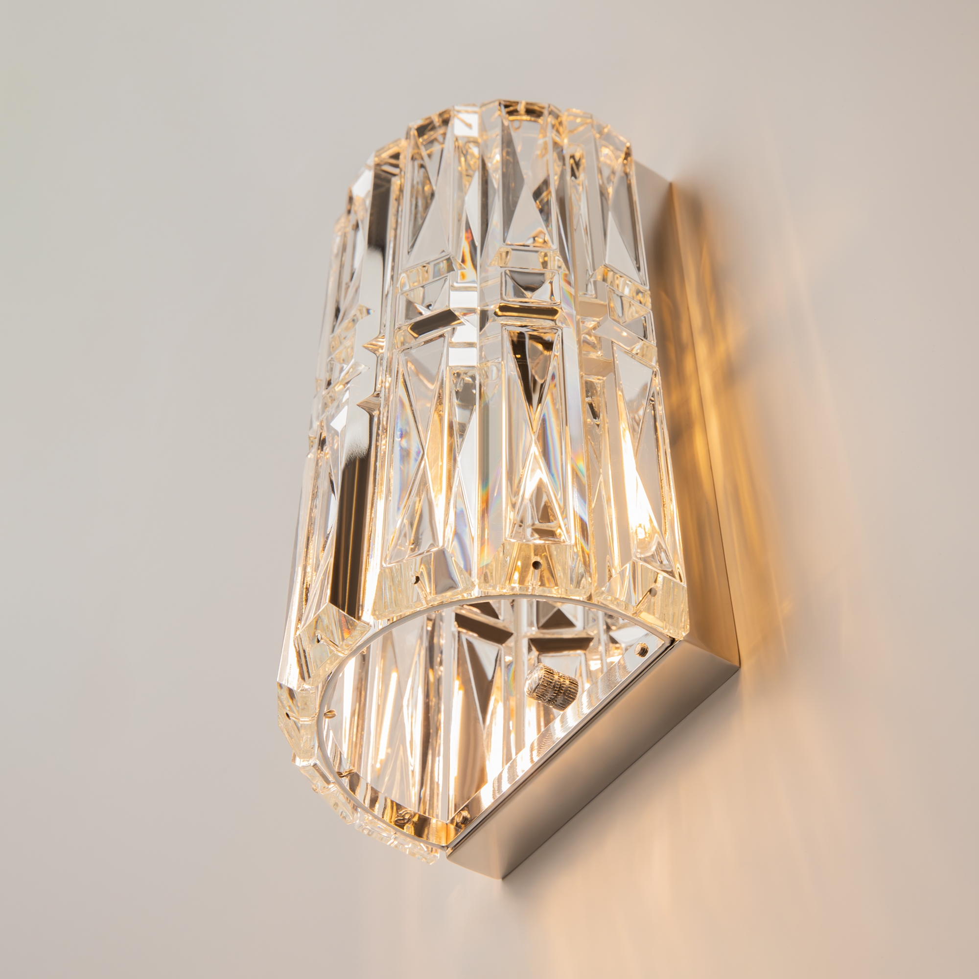 - Декоративные элементы: прозрачные стеклянные кристаллы с архитектурной огранкой, создающие эффект игры света