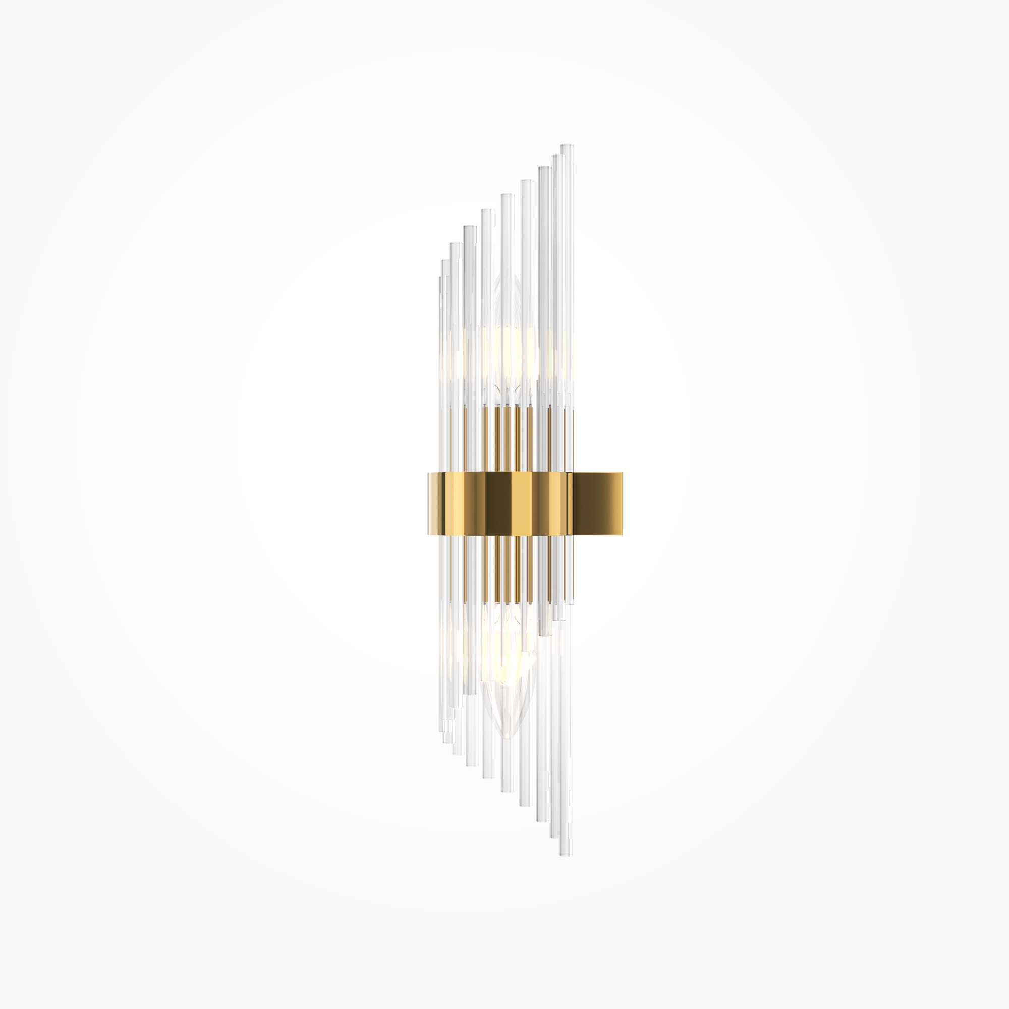 Настенный светильник выполнен в современном стиле, что отражено в названии коллекции Maytoni Modern. Арматура из качественного металла окрашена в благородный золотой цвет, придающий светильнику роскошный вид. Главной дизайнерской особенностью модели является декоративный элемент из прозрачного стекла в форме рельефных трубок, который эффектно преломляет свет, создавая интересную игру теней и бликов на стенах.