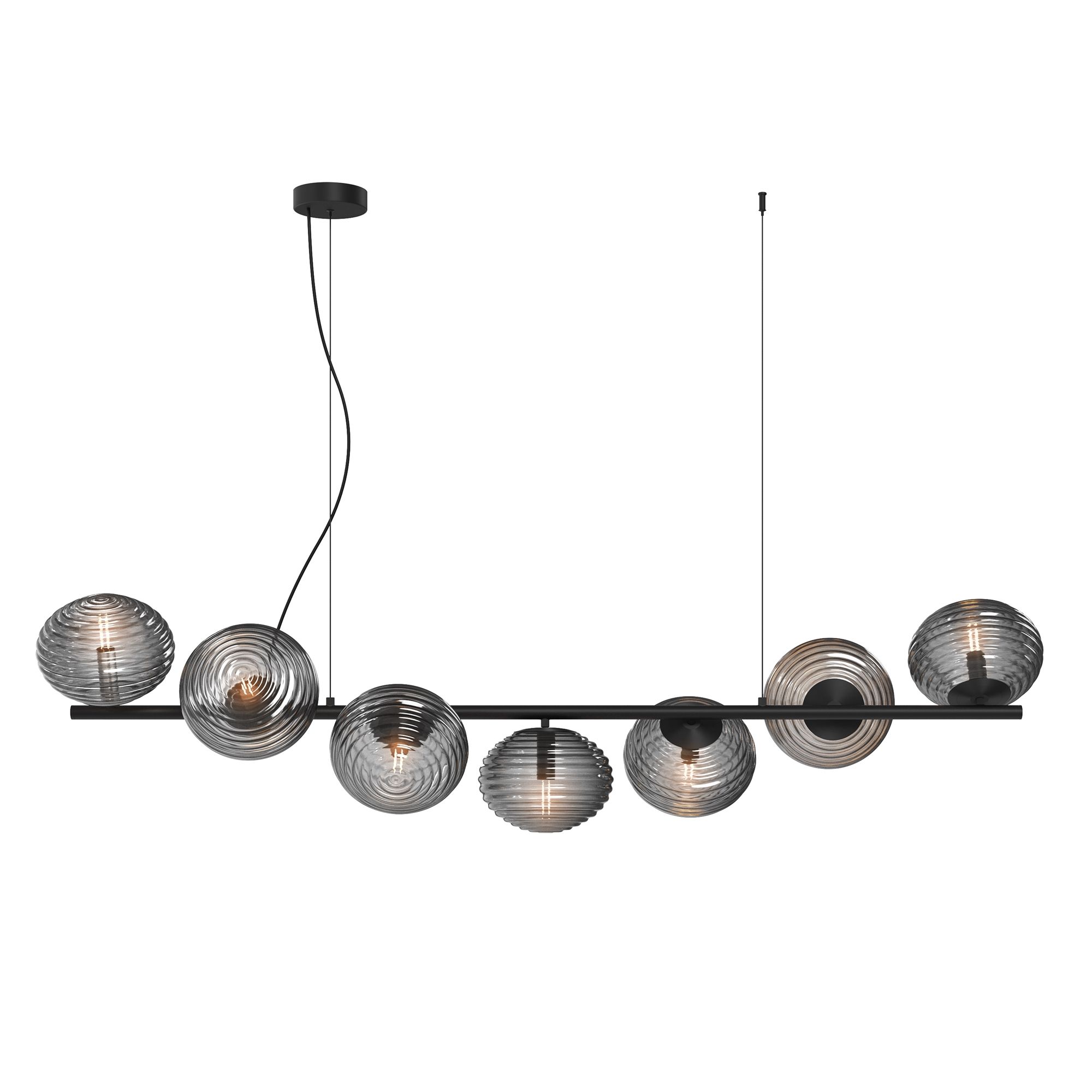 Благодаря наличию 7 плафонов светильник обеспечивает равномерное распределение света по всей площади освещаемой поверхности. Дымчатые стеклянные плафоны мягко рассеивают свет, создавая комфортное освещение без резких теней и бликов.