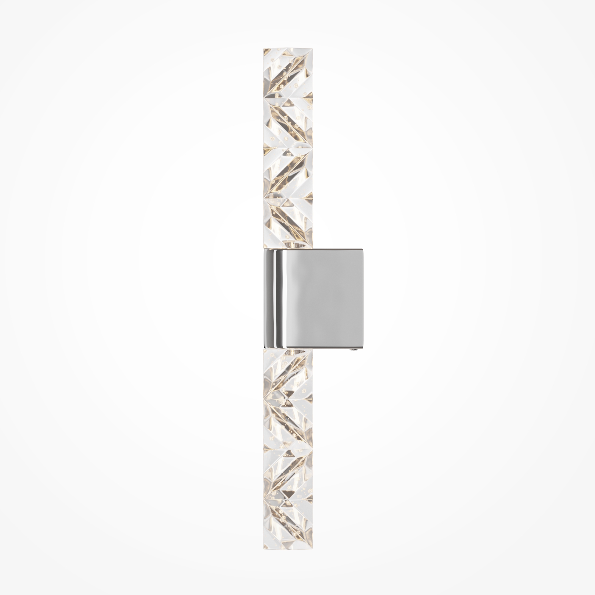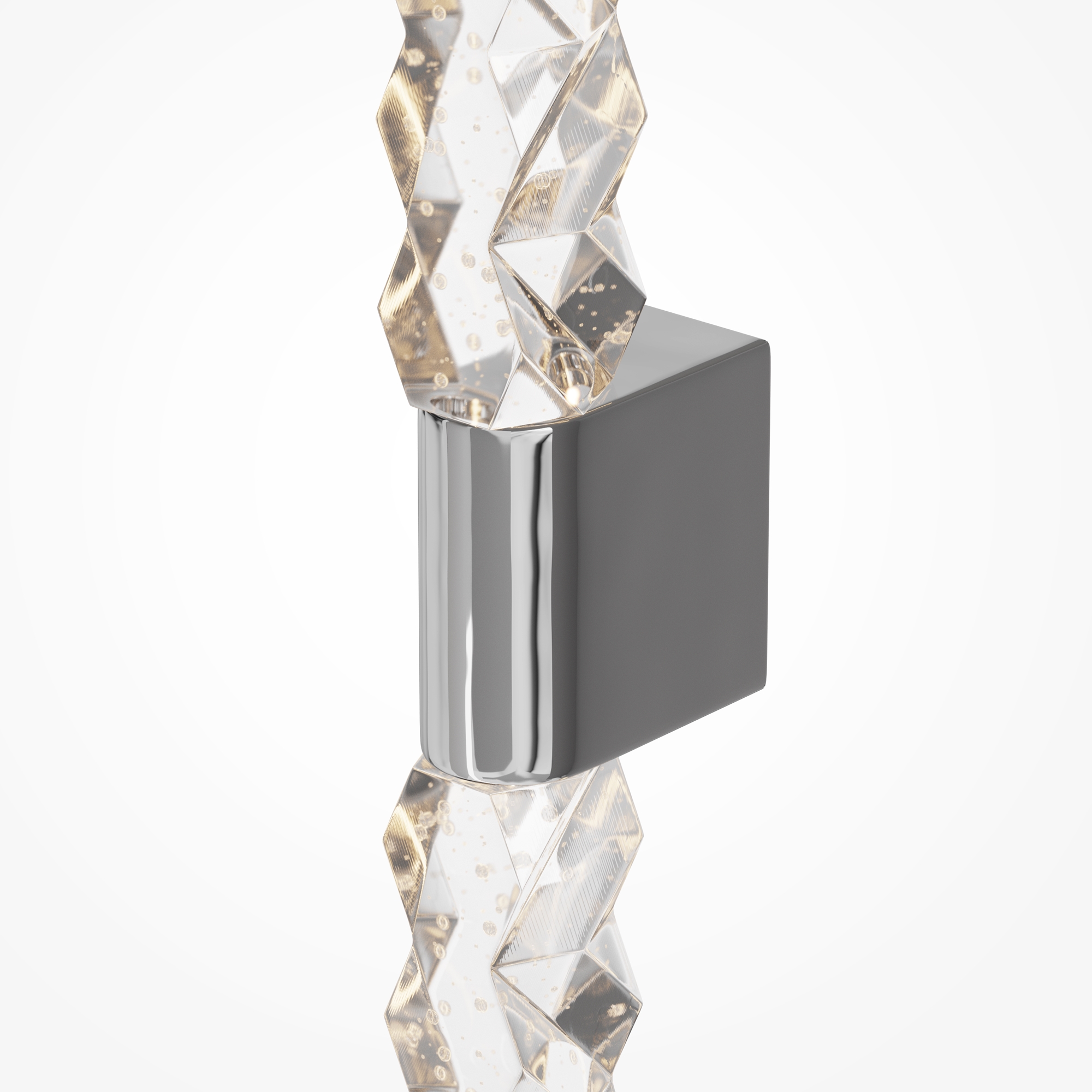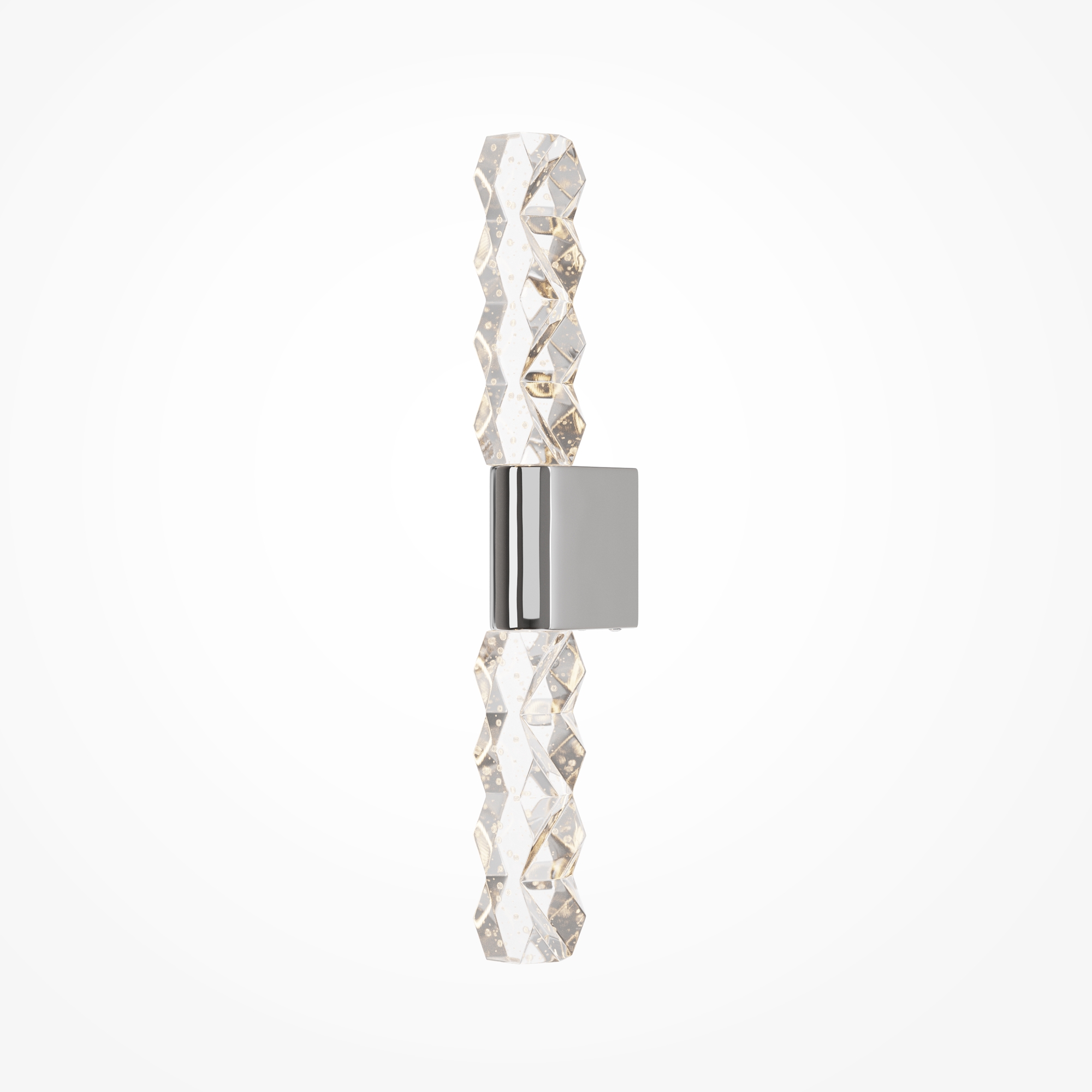 Элегантный настенный светильник выполнен в хромированной отделке, которая придает ему благородный блеск и современный вид. Арматура изготовлена из высококачественного металла, что обеспечивает надежность и долговечность конструкции. Особую роскошь бра придает плафон из хрусталя с зигзагообразным орнаментом, который создает неповторимую игру света и теней на стенах помещения.