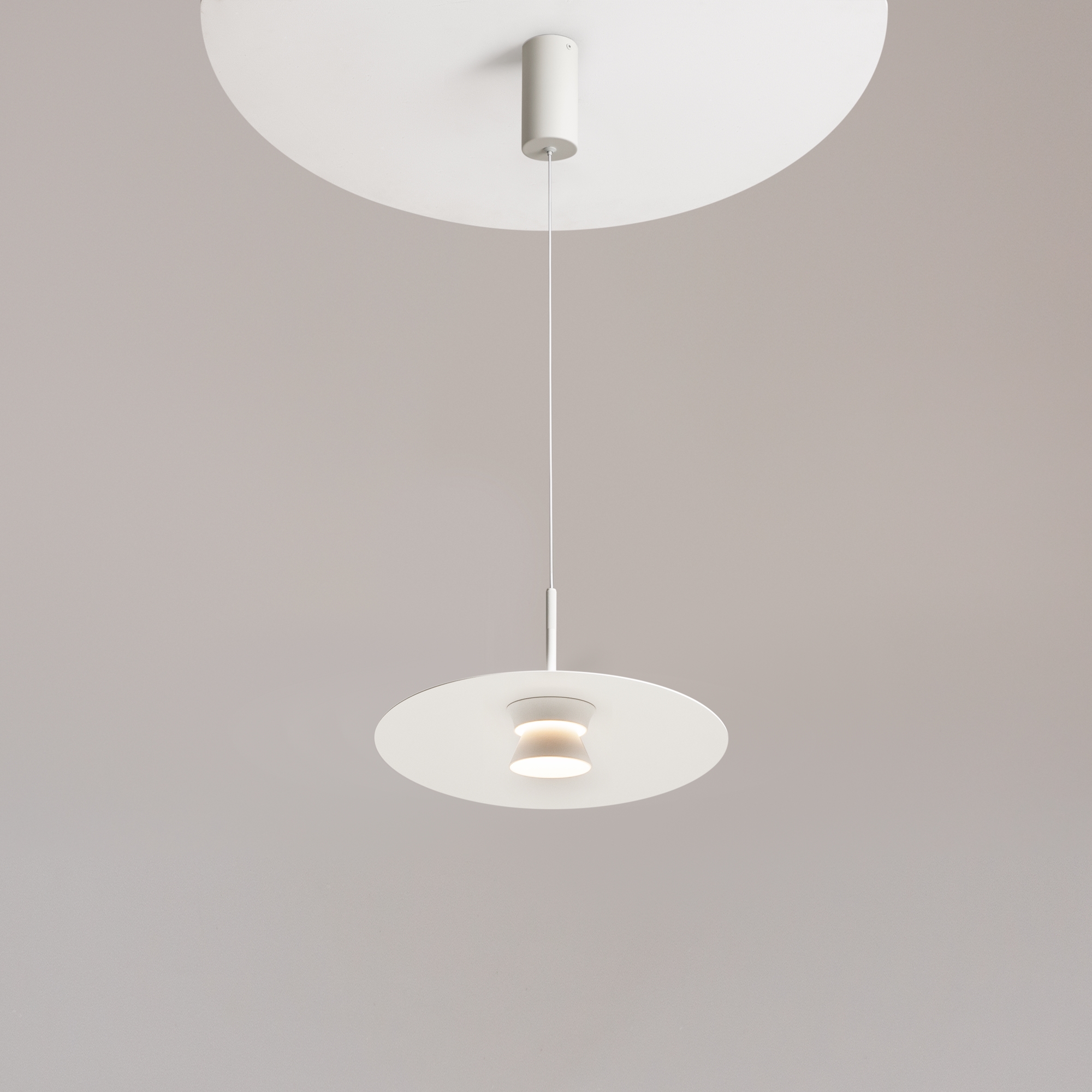 Светильник выполнен в современном стиле Maytoni Modern и отличается лаконичными формами. Модель имеет круглый плафон диаметром 350 мм с белым матовым покрытием. Корпус светильника изготовлен из высококачественного алюминия, что обеспечивает прибору легкость и долговечность. Белый цвет арматуры и абажура делает светильник универсальным решением для любого интерьера – от скандинавского до хай-тек, от минимализма до современной классики.
