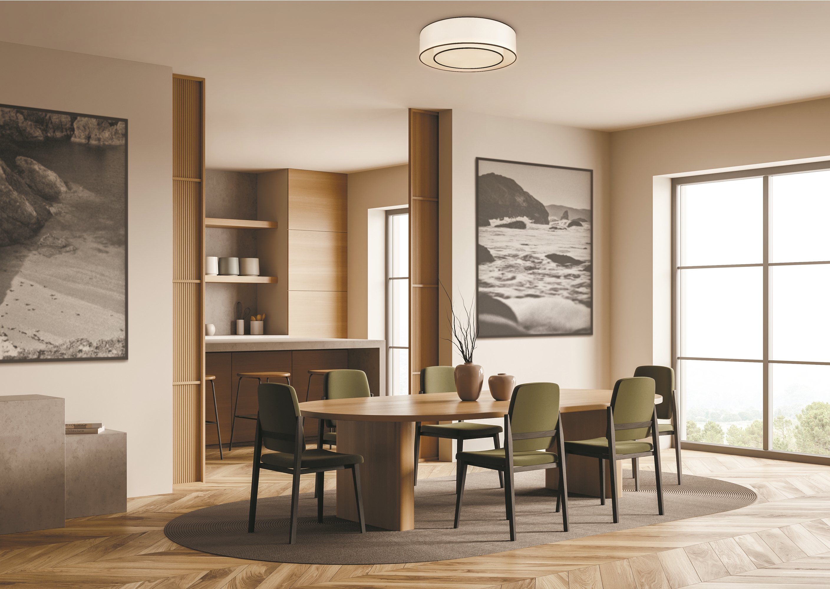 Потолочный светильник из коллекции Bergamo представляет собой воплощение элегантности в современном прочтении. Благодаря сочетанию белого цвета арматуры и двухцветного абажура (белый с черным кантом), светильник станет изысканным дополнением разнообразных интерьерных решений: