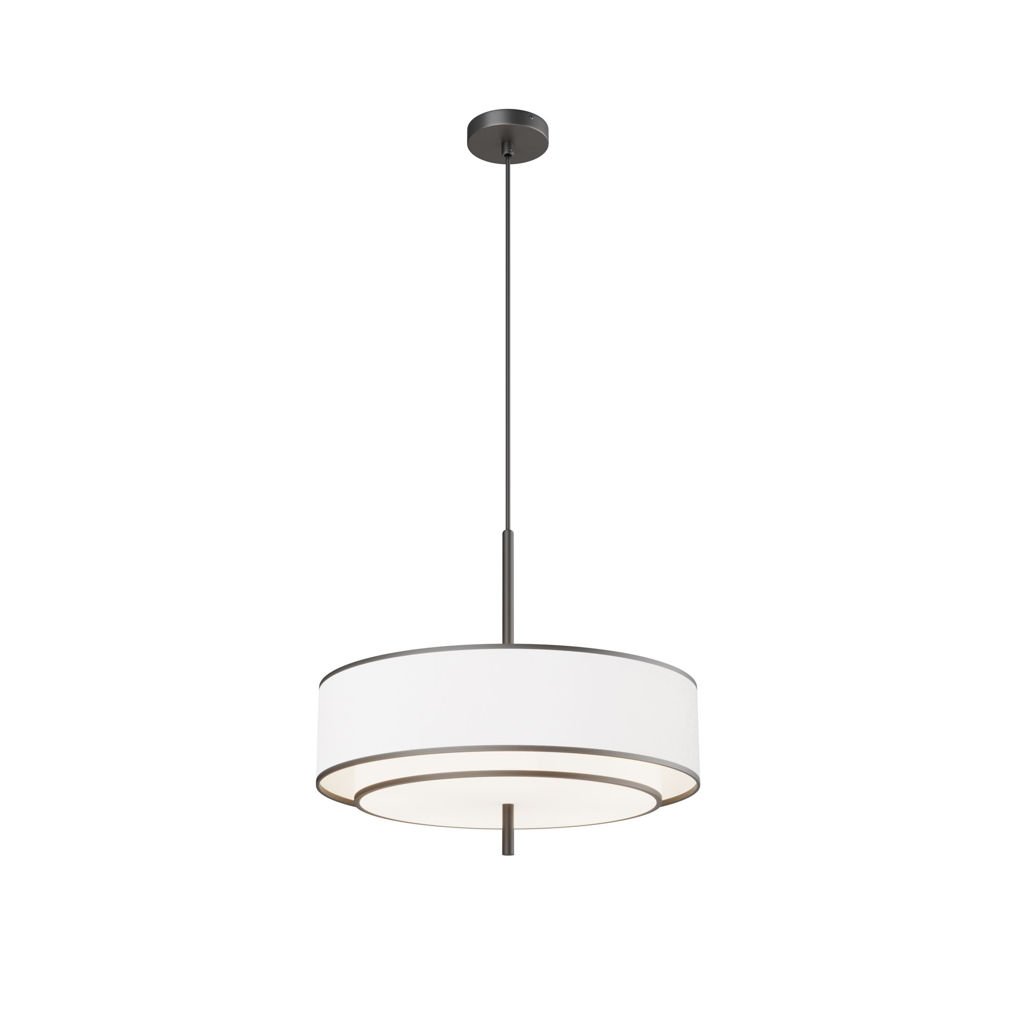 Абажур светильника изготовлен из высококачественной ткани белого цвета, нанесенной на основу из ПВХ. Такое решение обеспечивает равномерное и мягкое рассеивание света, создавая в помещении уютную атмосферу. Металлическая арматура черного цвета не только выполняет функциональную роль, но и добавляет светильнику элегантности.