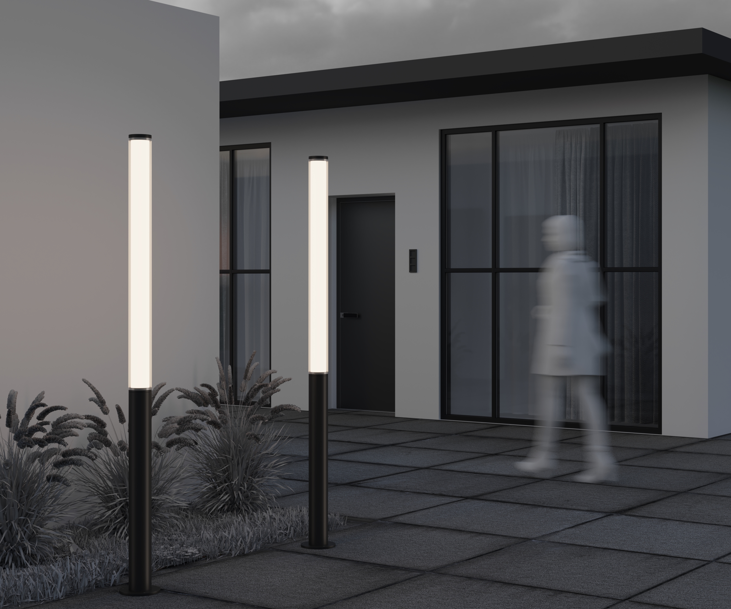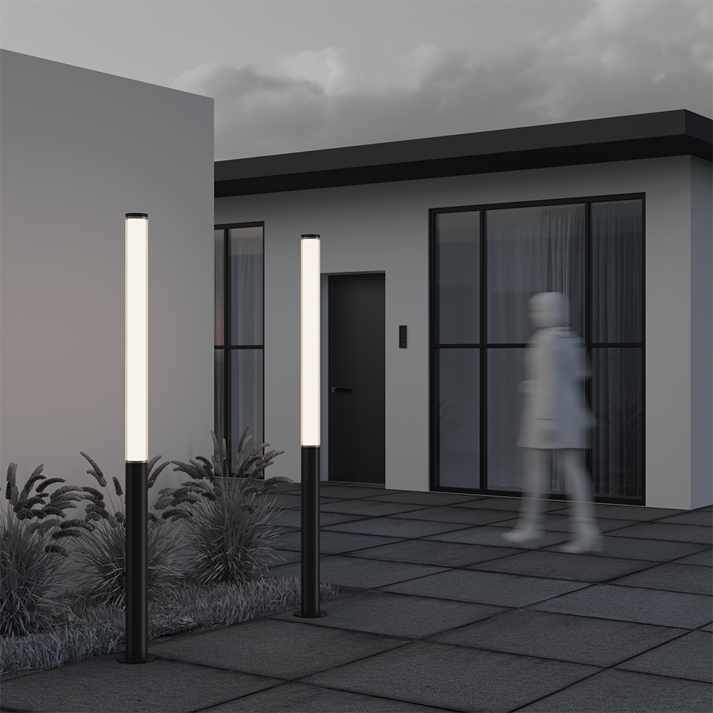 Универсальный черный цвет арматуры и минималистичный дизайн делают светильник актуальным для большинства экстерьеров – от строгих современных до классических садово-парковых ансамблей.