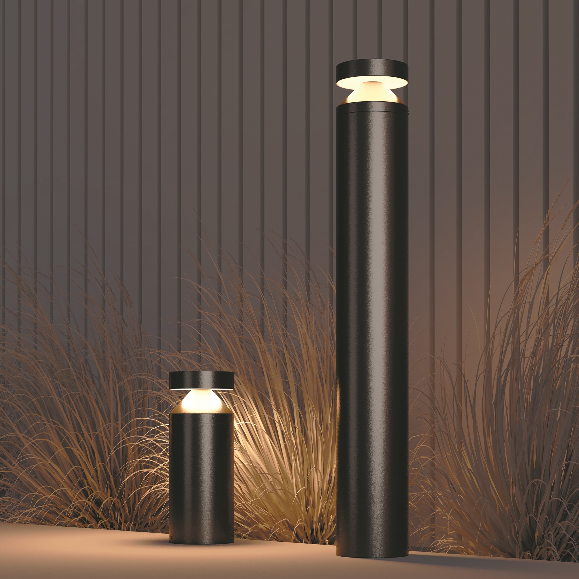 Светильник имеет современный накладной тип крепления, что существенно упрощает его установку на грунт или твердую поверхность. Высота светильника составляет 800 мм, а диаметр основания – 120 мм, что обеспечивает оптимальное распределение света на участке.