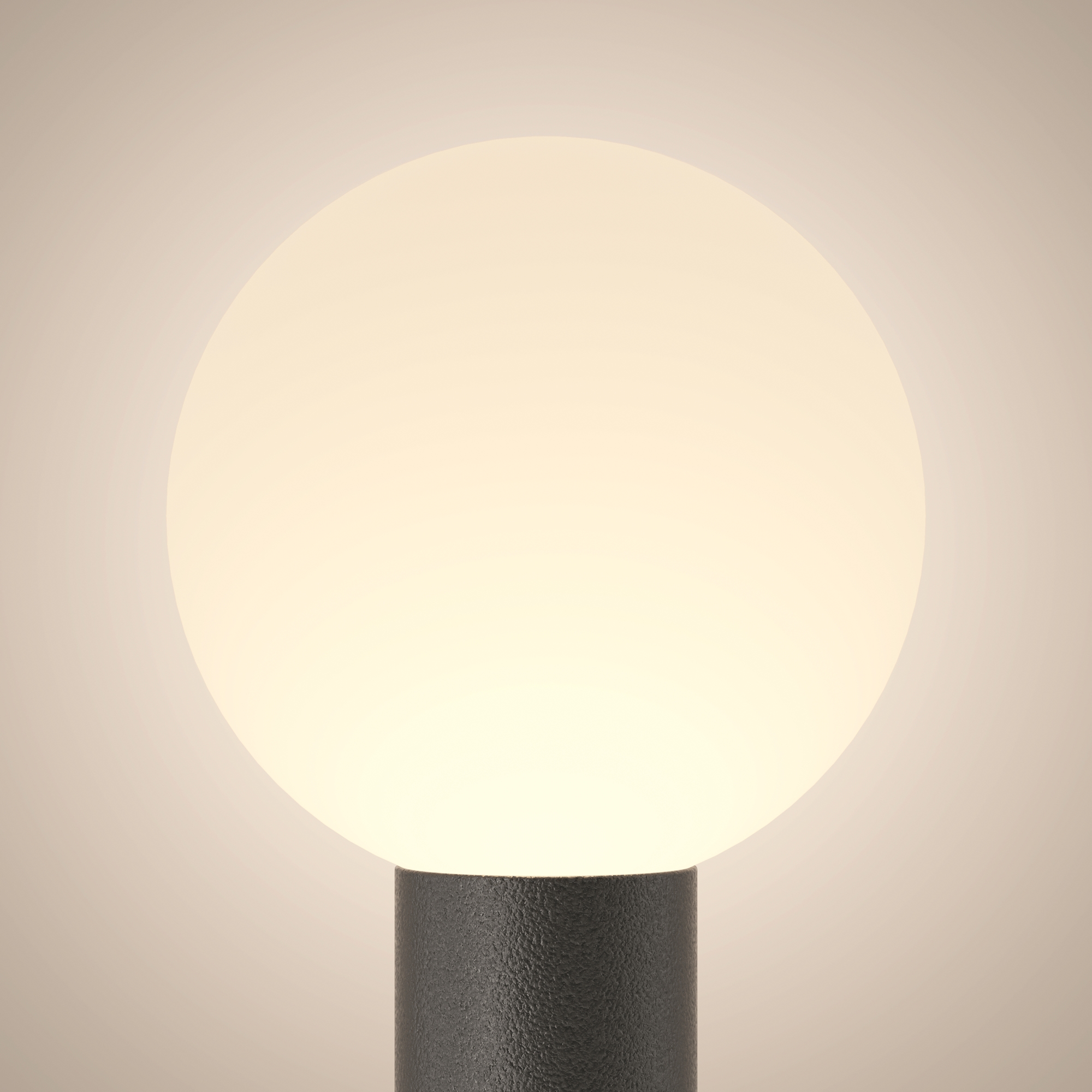 Особую эстетику светильнику придает сферический плафон из белого матового стекла, который создает мягкое, равномерное рассеивание света и формирует уютное освещение пространства вокруг.
