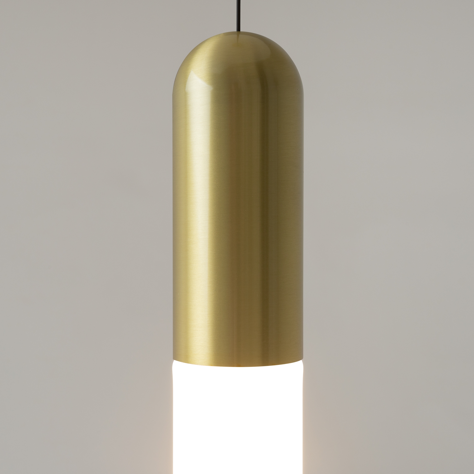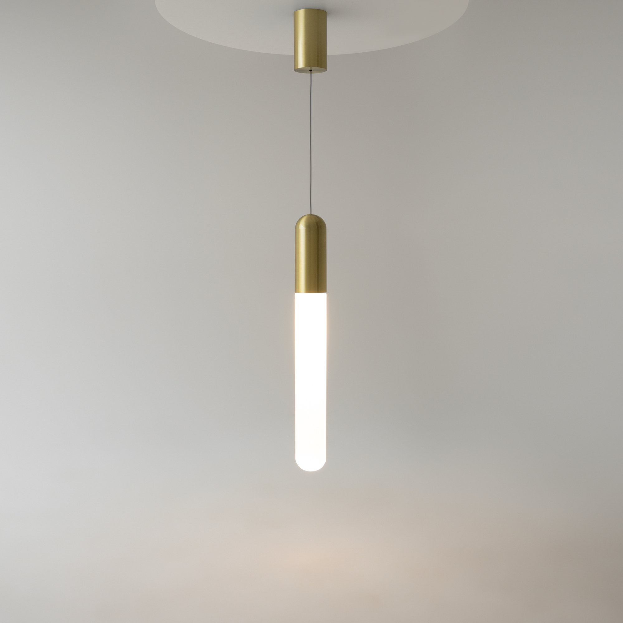 Светильник выполнен в элегантном минималистичном стиле, который отлично впишется как в современные, так и в классические интерьеры. Корпус изготовлен из высококачественного алюминия цвета латунь, что придает изделию благородный внешний вид и обеспечивает долговечность использования. Матовый рассеиватель из стекла создает мягкое, равномерное освещение и эффектно дополняет металлическую арматуру.