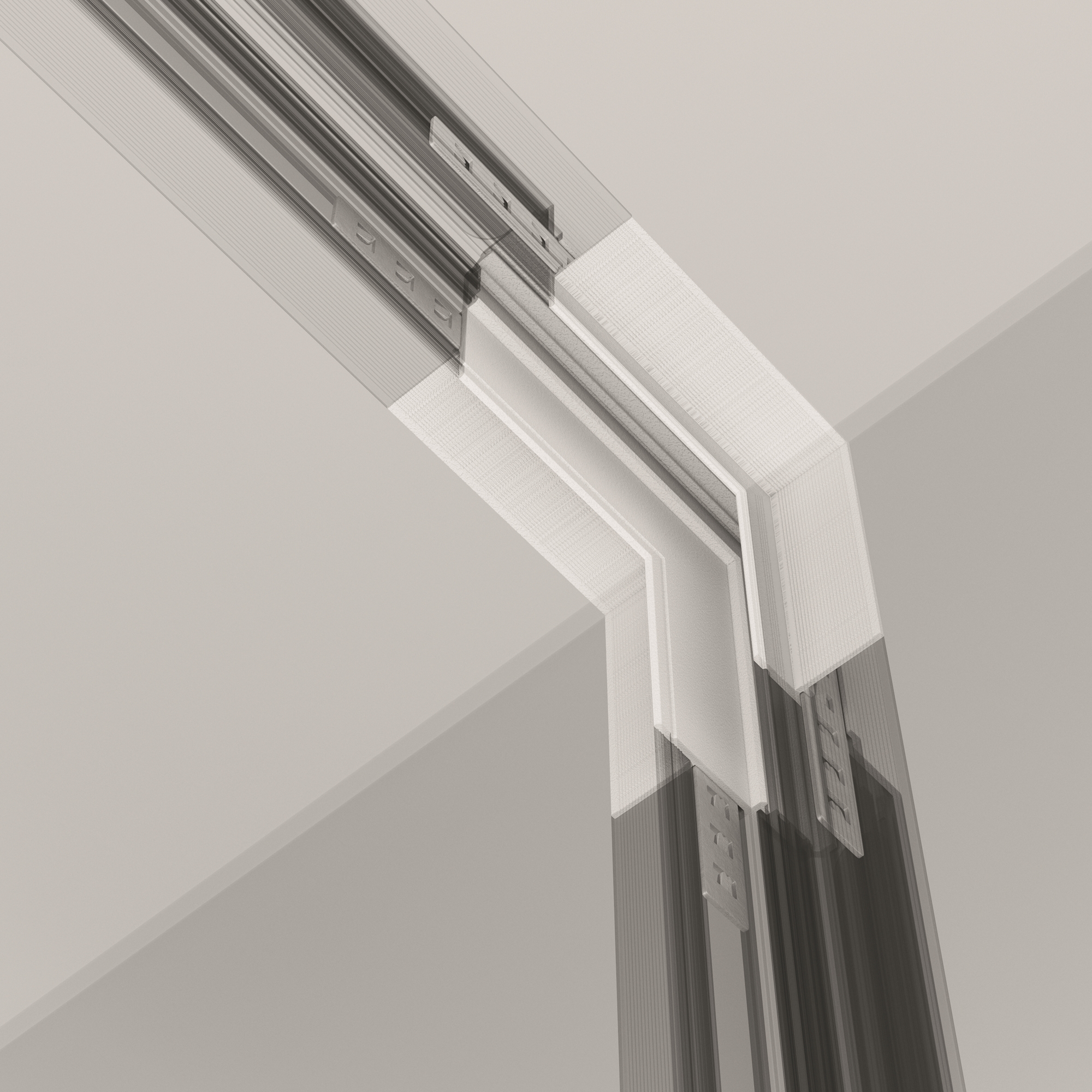 Угловой внутренний коннектор позволяет организовать освещение по периметру помещения, акцентное освещение отдельных зон или предметов интерьера, а также создать цельную световую композицию в пространстве.