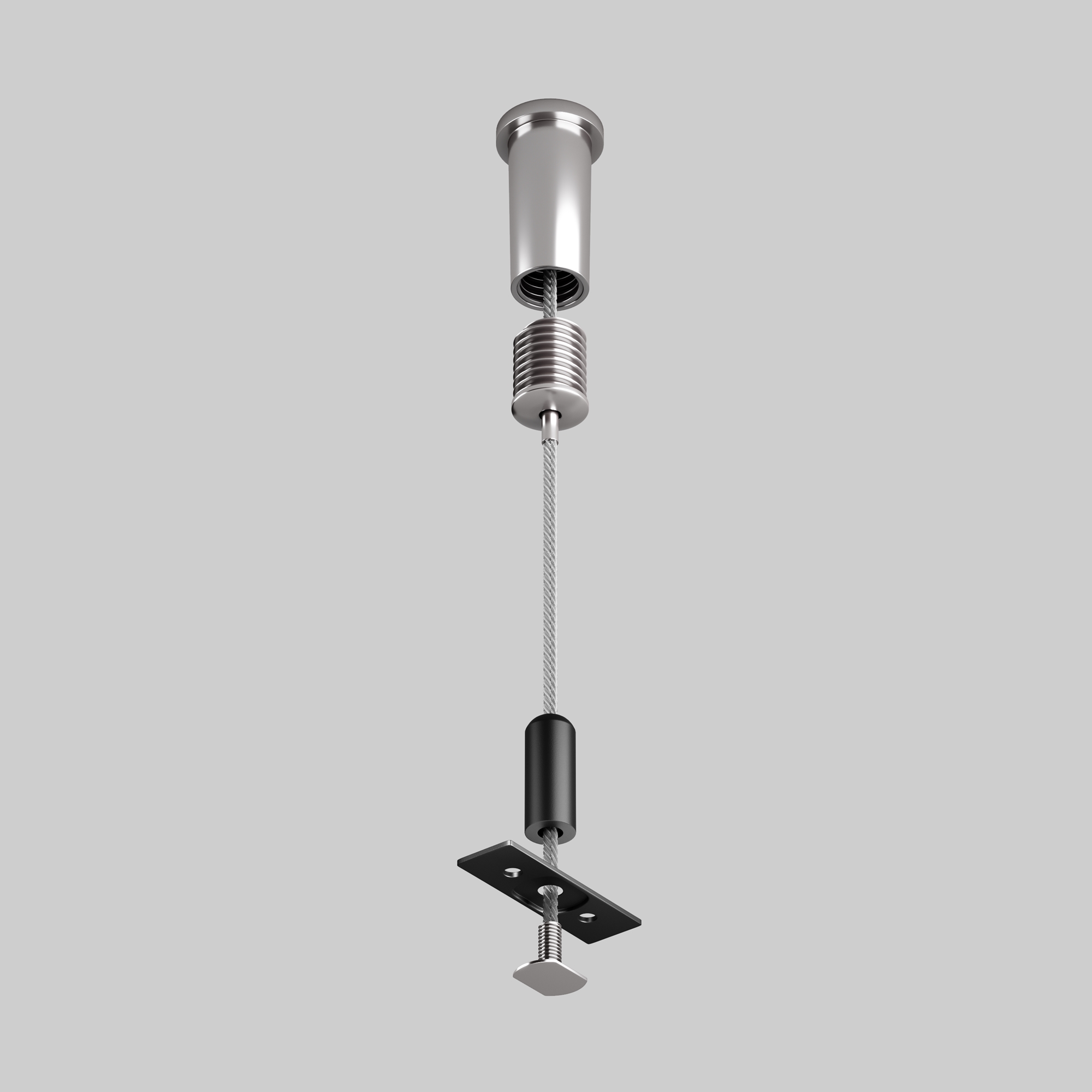 Подвес выполнен из высококачественного алюминия с порошковым окрашиванием в черный (графитовый) цвет, что обеспечивает изделию не только привлекательный внешний вид, но и высокую устойчивость к коррозии и механическим повреждениям. Благодаря современным технологиям производства и обработки металла, тросовый подвес отличается надежностью и долговечностью.