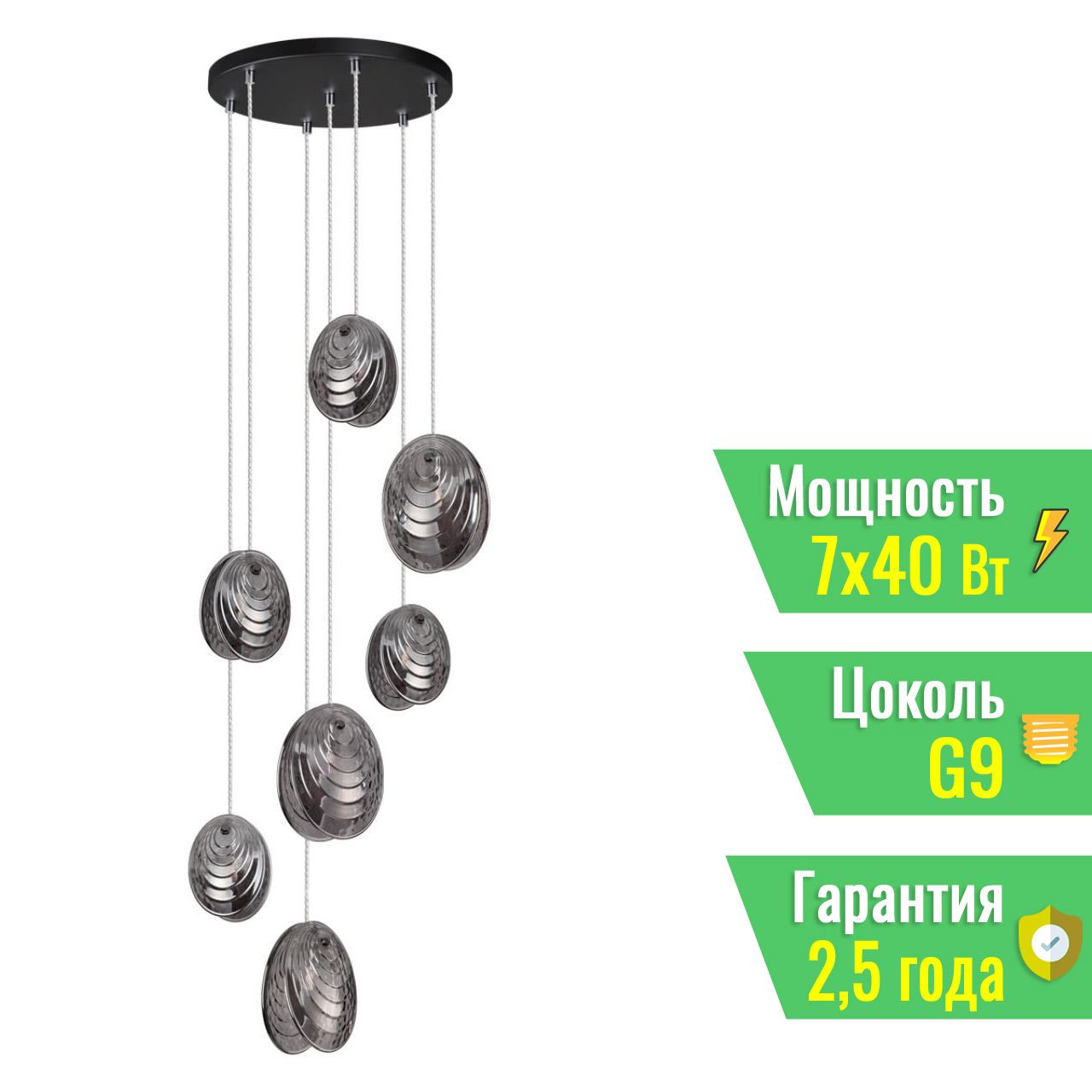 5038/7 MODERN ODL24 000 черный/дымчатый/металл/стекло Люстра каскадная G9 7*40W MUSSELS Odeon Light 5038/7