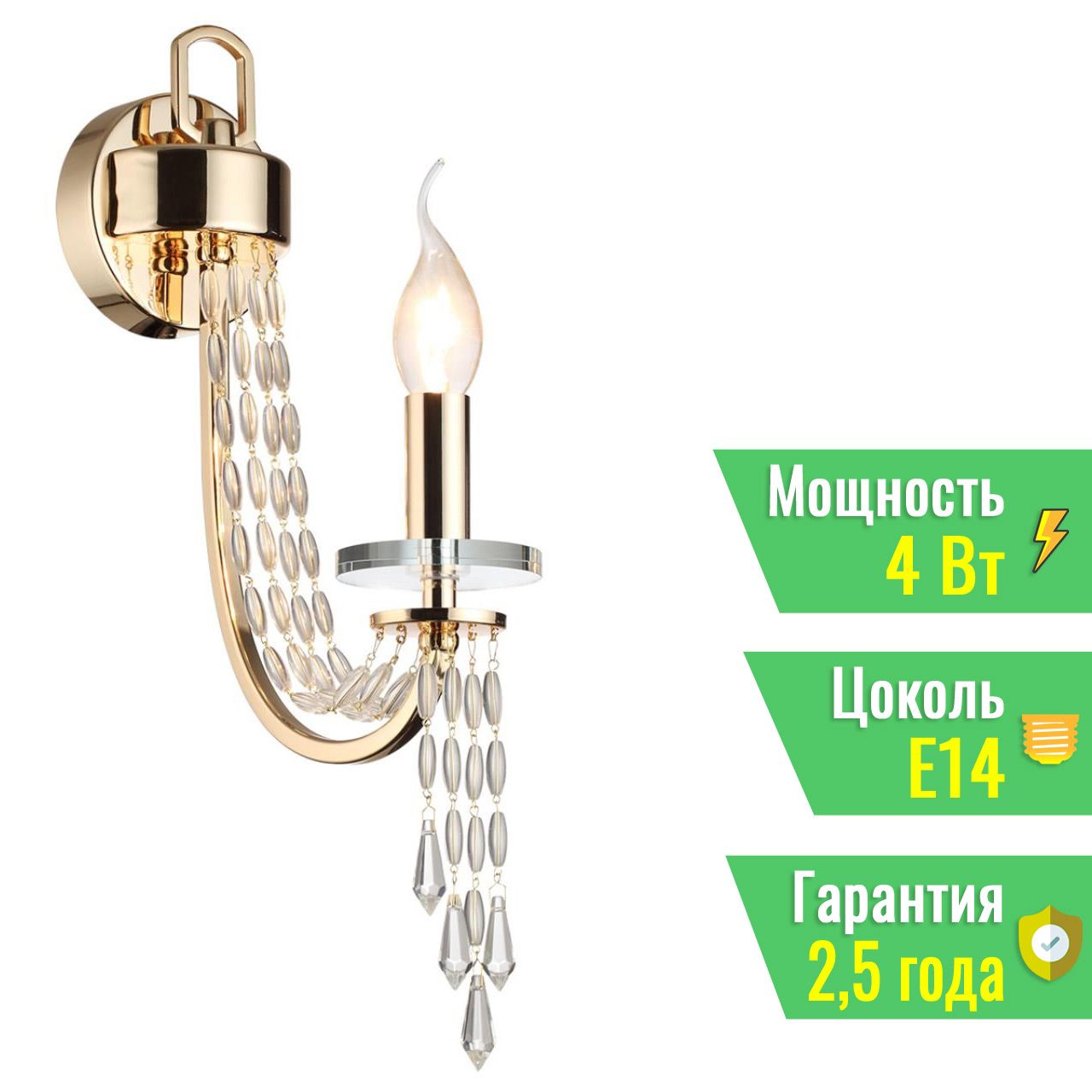 Odeon Light 5063/1W 5063/1W CLASSIC ODL25 625 золото/прозрачный/металл/хрусталь Бра E14 1*40W CAPEL - купить в Санкт-Петербурге. Цена - 8 620 руб.