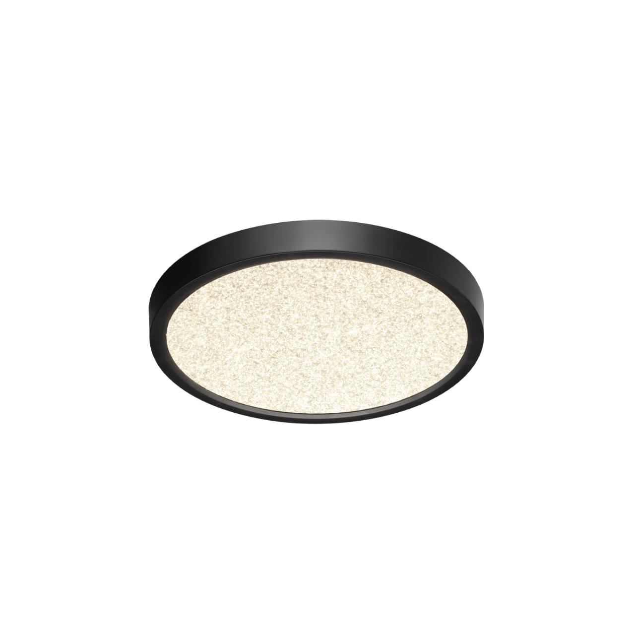 Диаметр светильника составляет 230 мм, что делает его оптимальным для небольших и средних по площади комнат. Тонкий незаметный ободок белого цвета элегантно обрамляет матовый рассеиватель, украшенный россыпью серебряных искр, создающих потрясающий декоративный эффект. Это придает светильнику особую изысканность и делает его заметным элементом интерьера даже в выключенном состоянии.