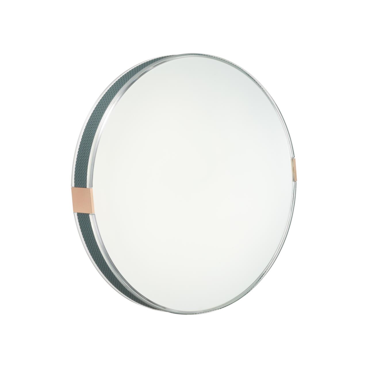 Изюминкой дизайна является эффектный обод из прозрачного пластика, декорированный фактурной эко-кожей серо-голубого оттенка и украшенный золотистыми металлическими клипсами. Такое стилистическое решение придает светильнику современный и изысканный вид, который станет акцентным элементом интерьера.
