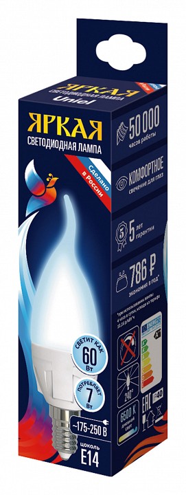 ULUL-00011016 Лампа светодиодная Uniel яркая E14 7Вт 6500K UL-00011016
